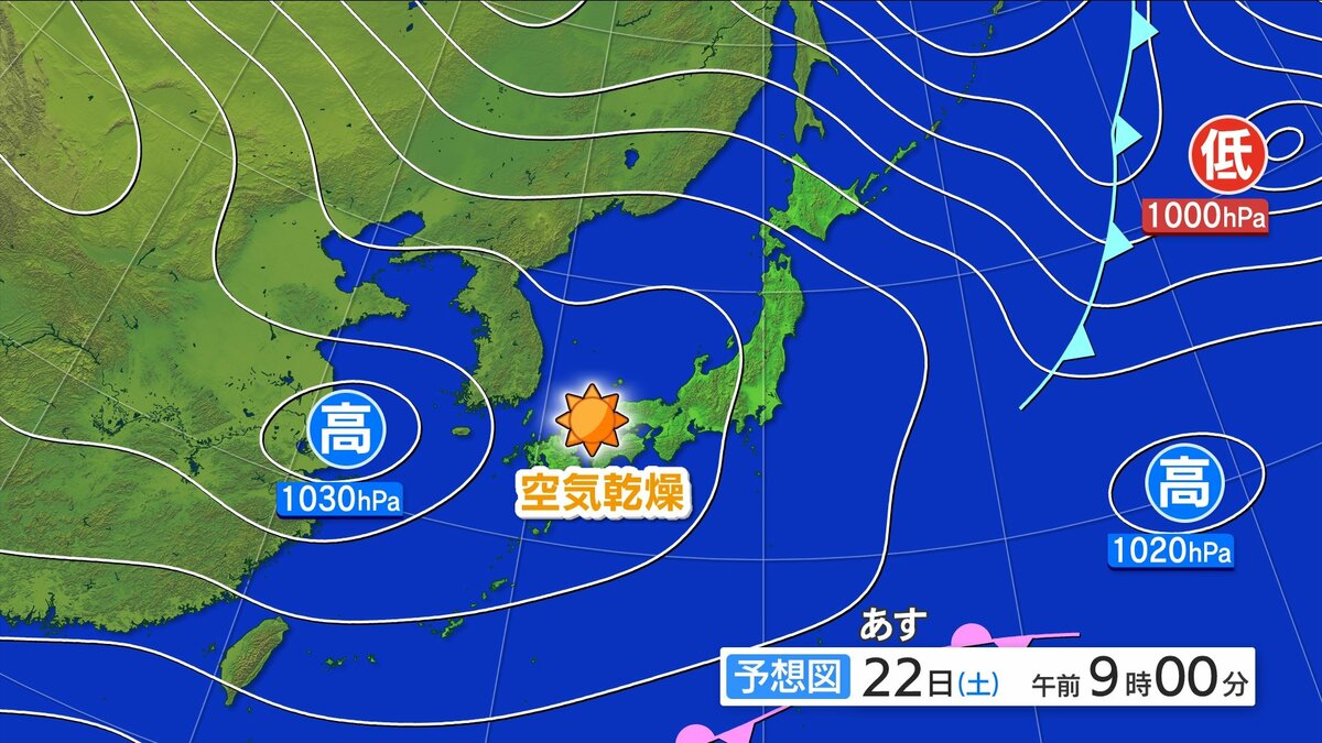23日(日)引き続き高気圧に覆われる 空気乾燥注意
