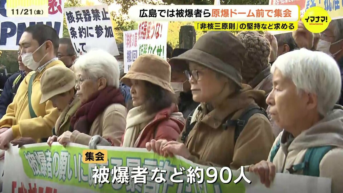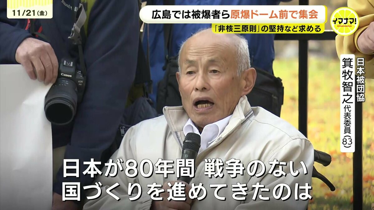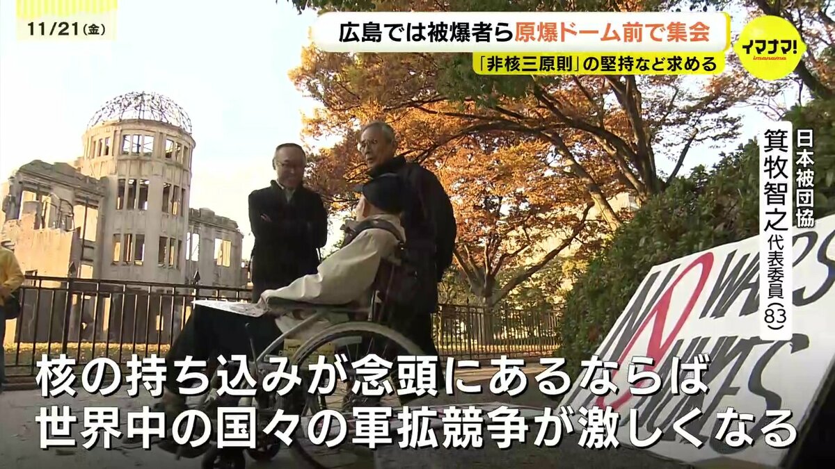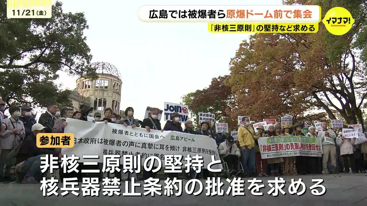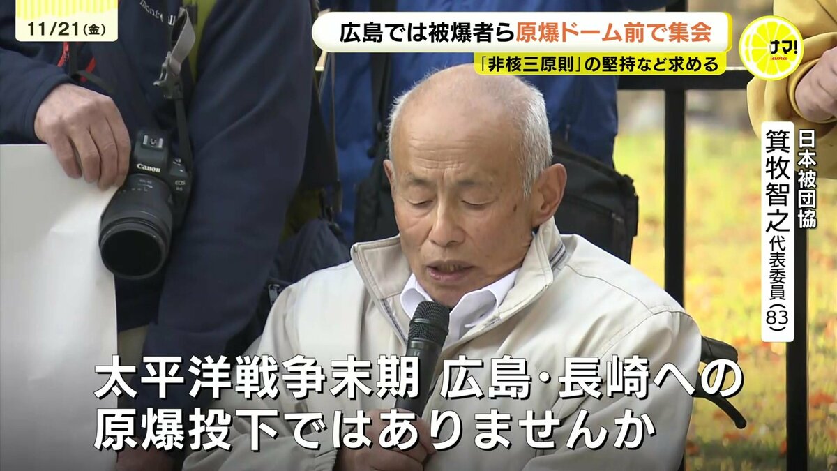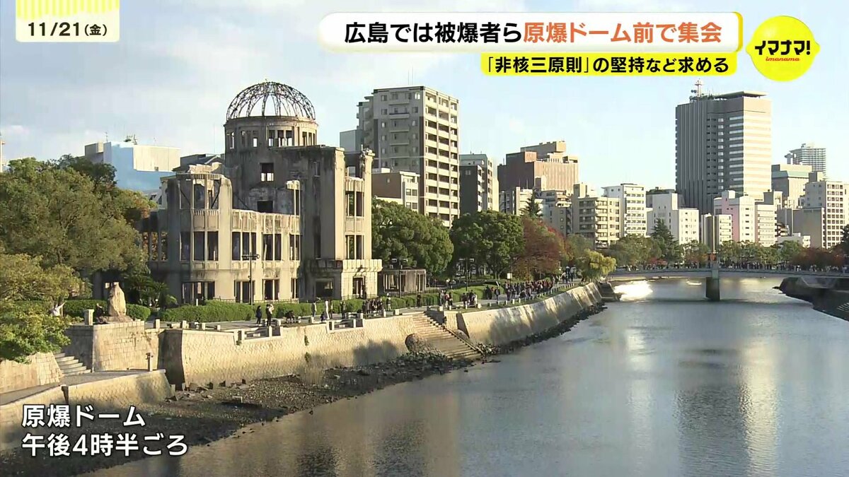 一方、被爆地・広島でも、原爆ドームの前で集会が開かれました。
