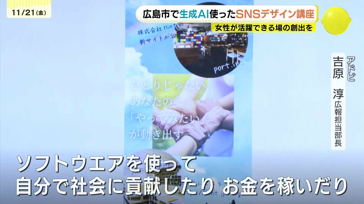 広島県内で女性が活躍できる場を創ろうと、主婦を対象に最新の生成AIを活用したSNS画像の作成講座が、20日、広島市内で開かれました。