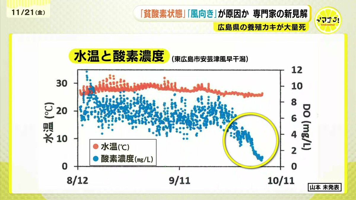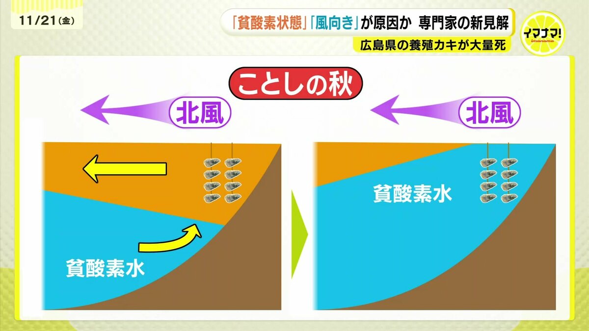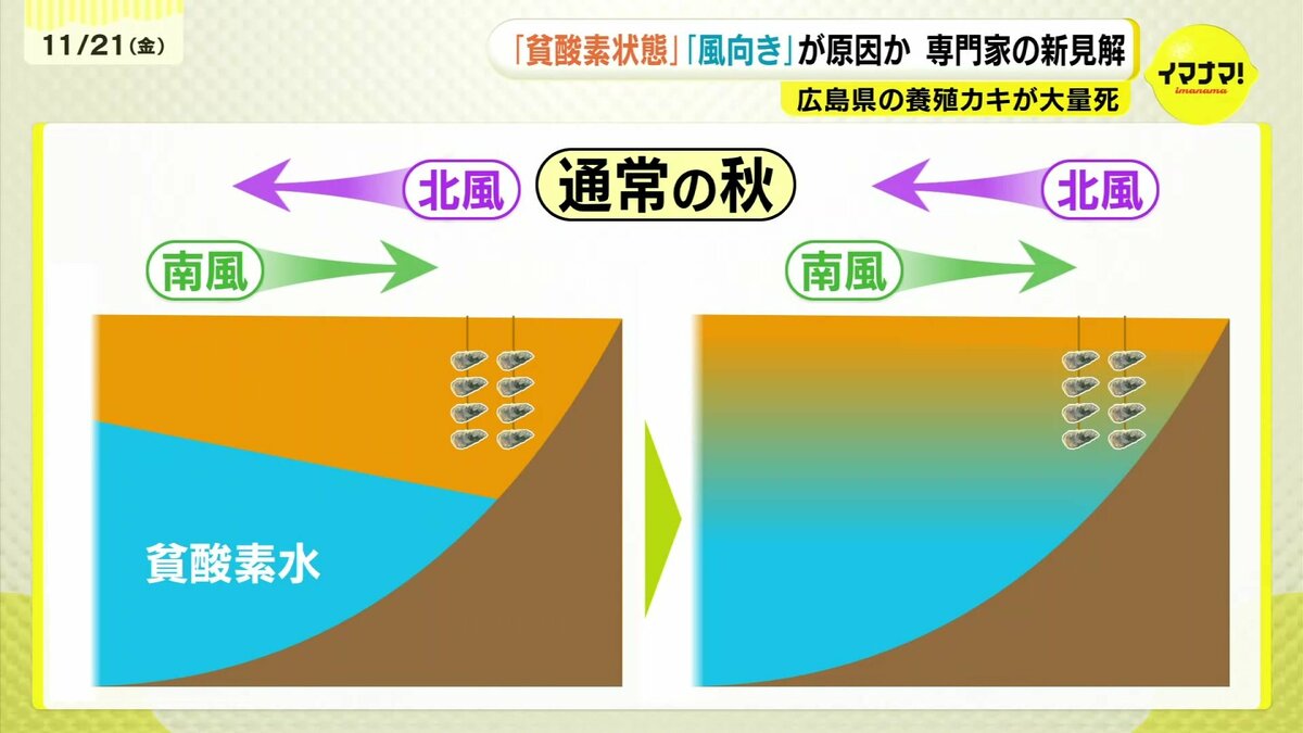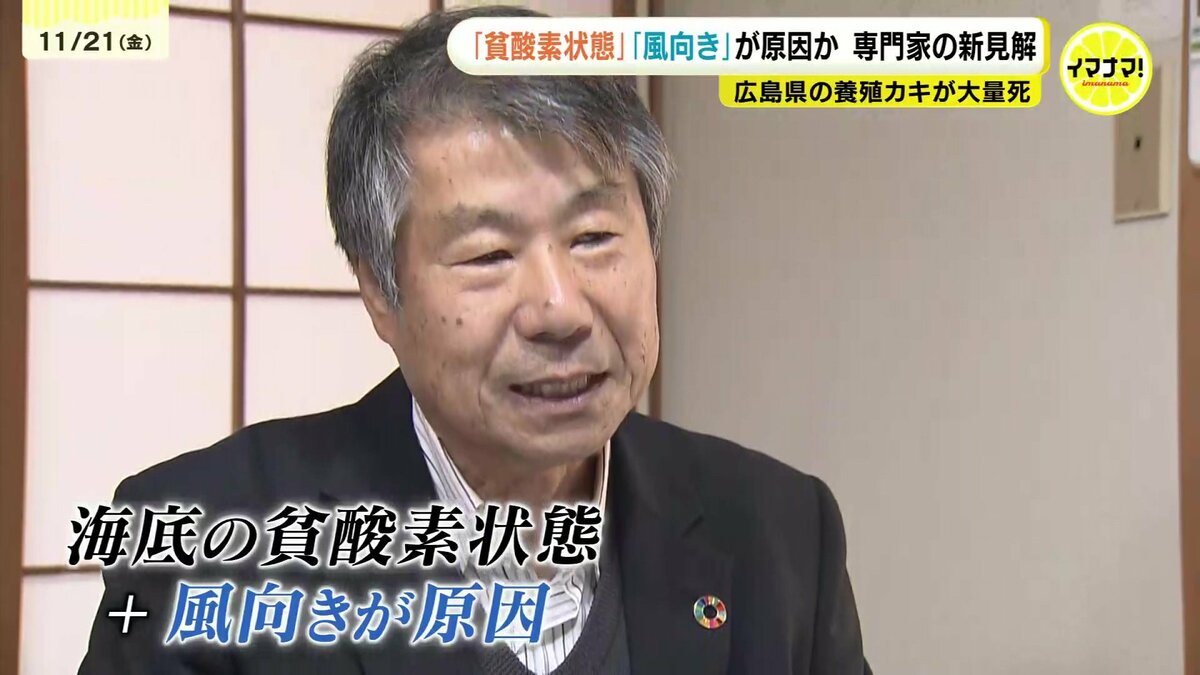 一方、今シーズンのカキのへい死について、流域圏環境再生センターの山本民次所長は、「海の底にできる貧酸素状態」と「風向き」が原因だと、結論づけています。