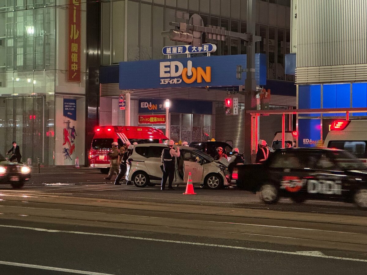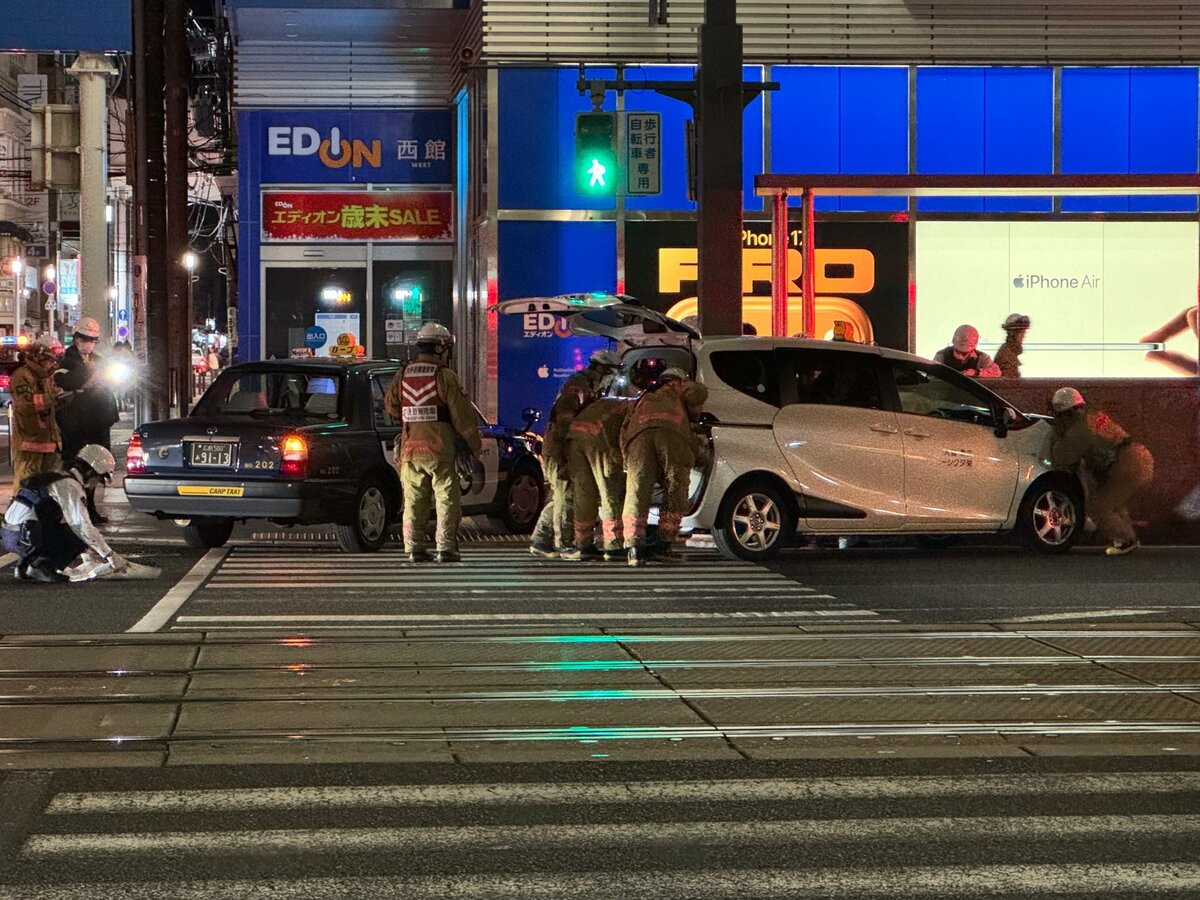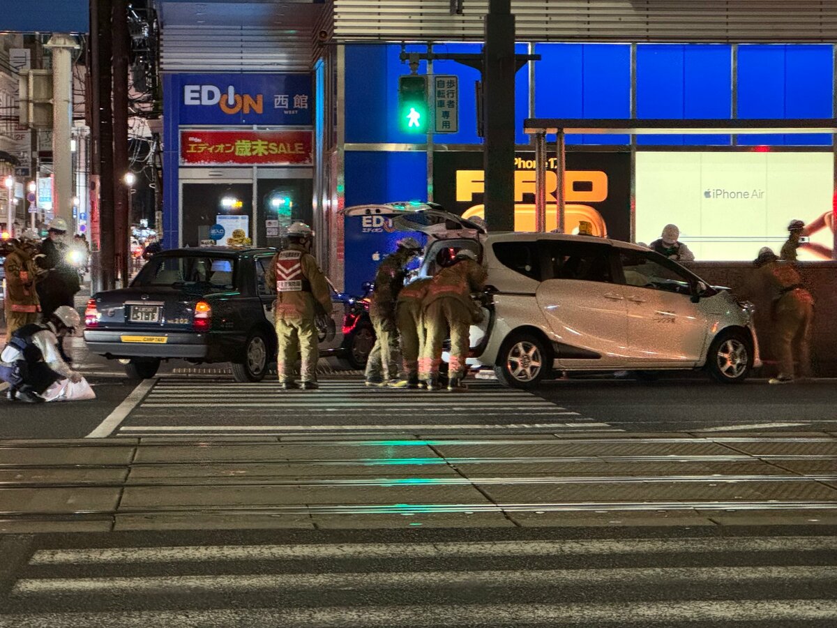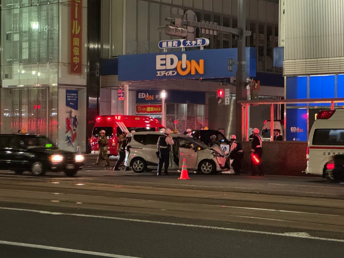 警察によりますと、事故があったのは、「紙屋町西交差点」で、右折しようとしたタクシーと直進していたタクシーが衝突したとみられます。