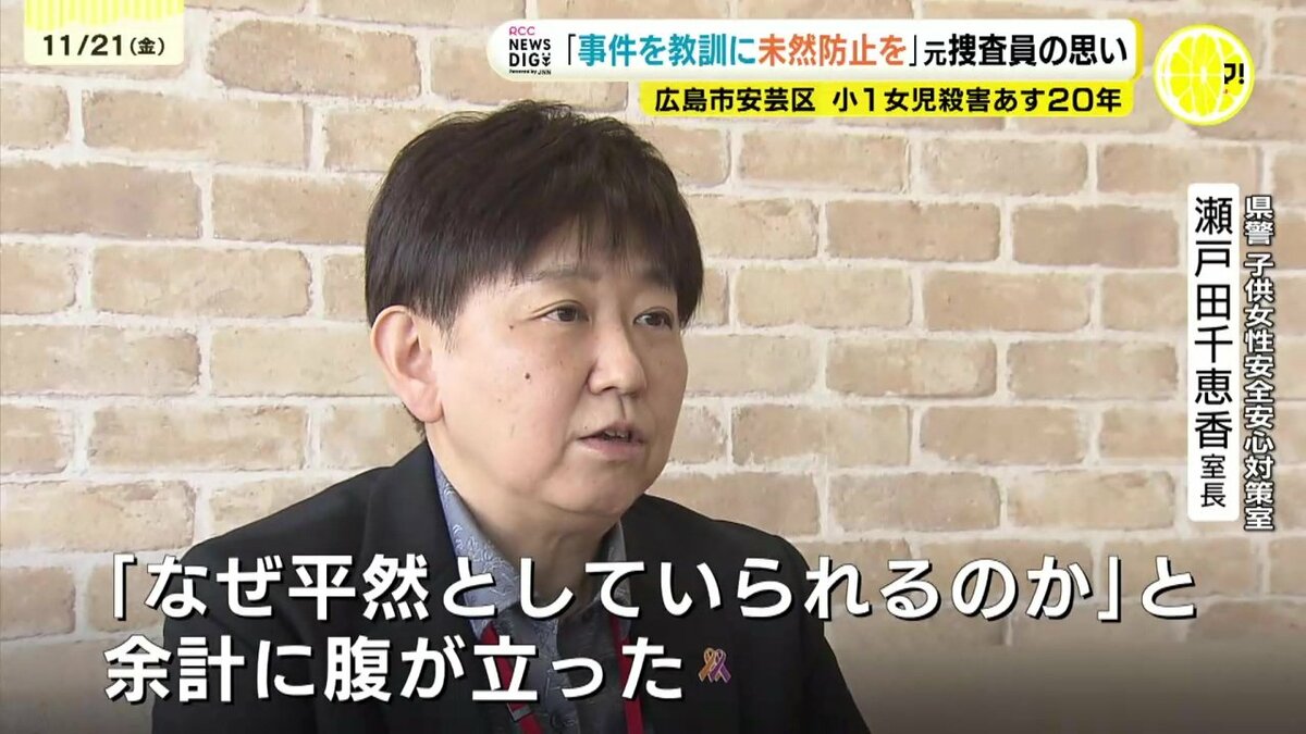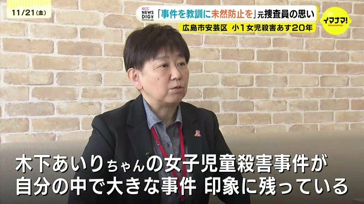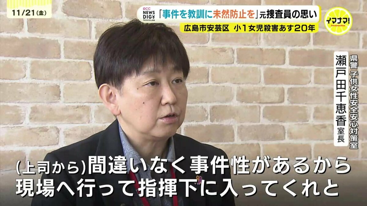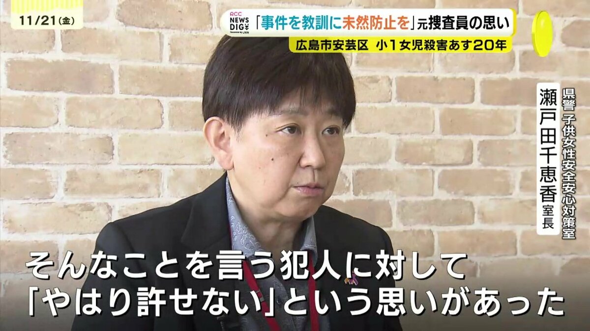 広島市安芸区で、当時小学1年生だった木下あいりちゃんが殺害された事件の発生から22日で20年を迎えました。発生当時、捜査員だった瀬戸田さんは、事件解決に向けて奔走しました。