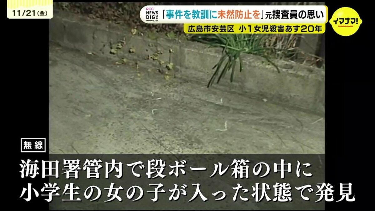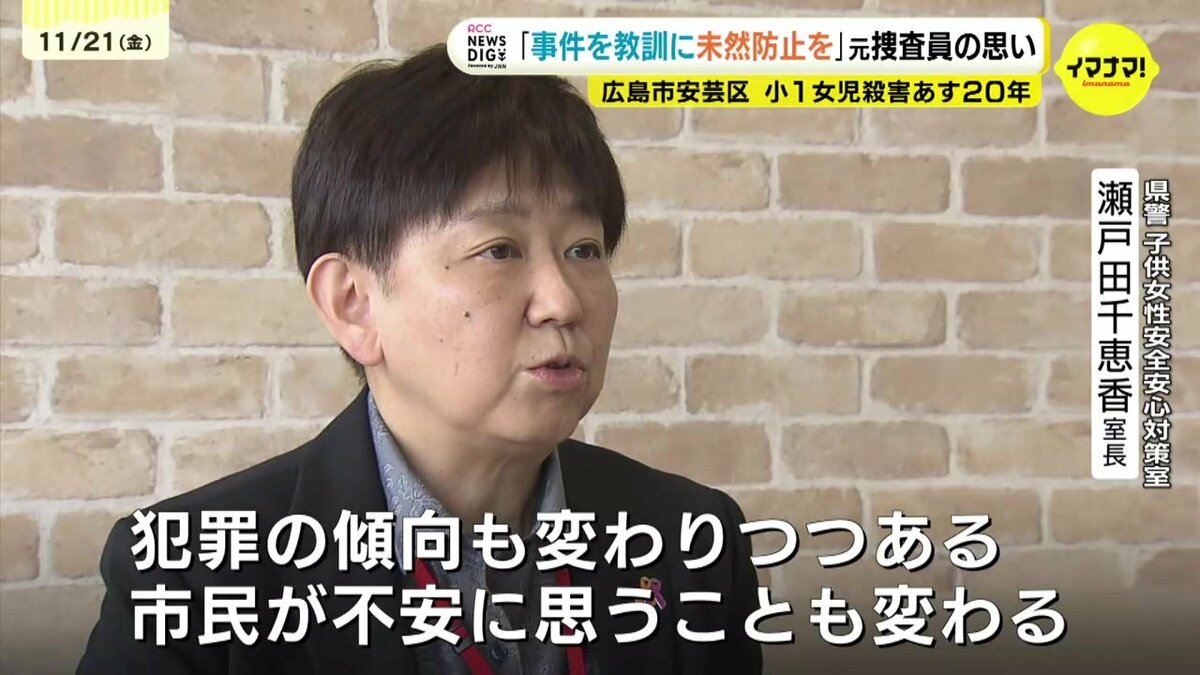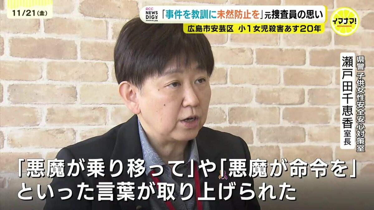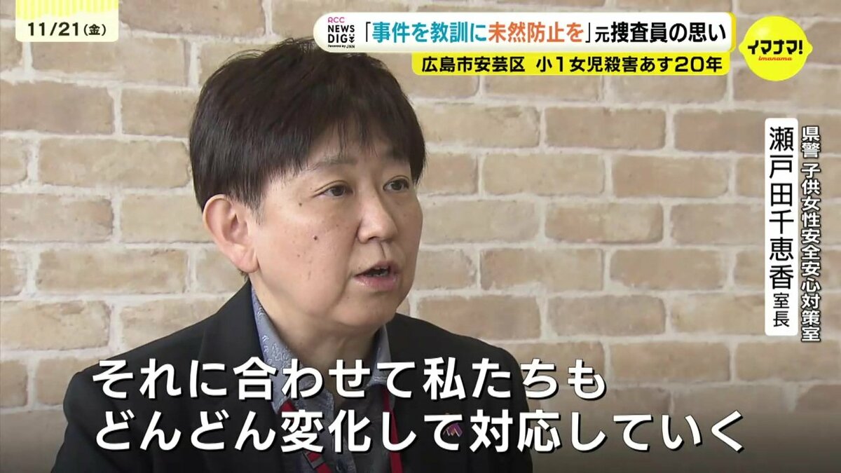 広島市安芸区で、当時小学1年生だった木下あいりちゃんが殺害された事件の発生から22日で20年を迎えました。発生当時、捜査員だった瀬戸田さんは、事件解決に向けて奔走しました。