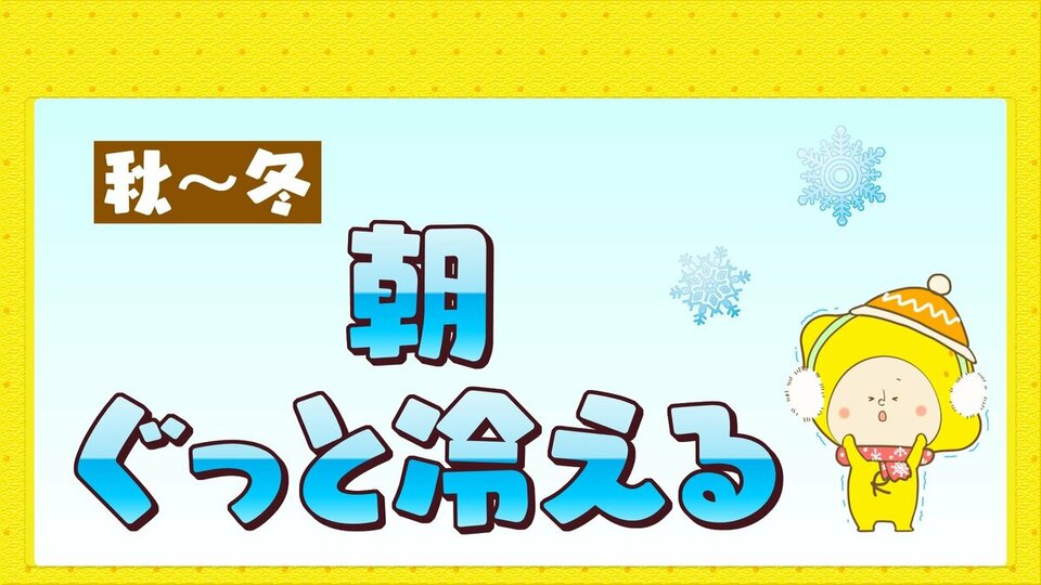 秋から冬、まさに今の時期は、晴れて風が弱い夜が多く、放射冷却現象が起きやすくなります。この先もしばらく、日中は日差しのぬくもりを感じられる日が続きますが、朝晩はぐっと冷える日が続くため、体調管理にはご注意ください。