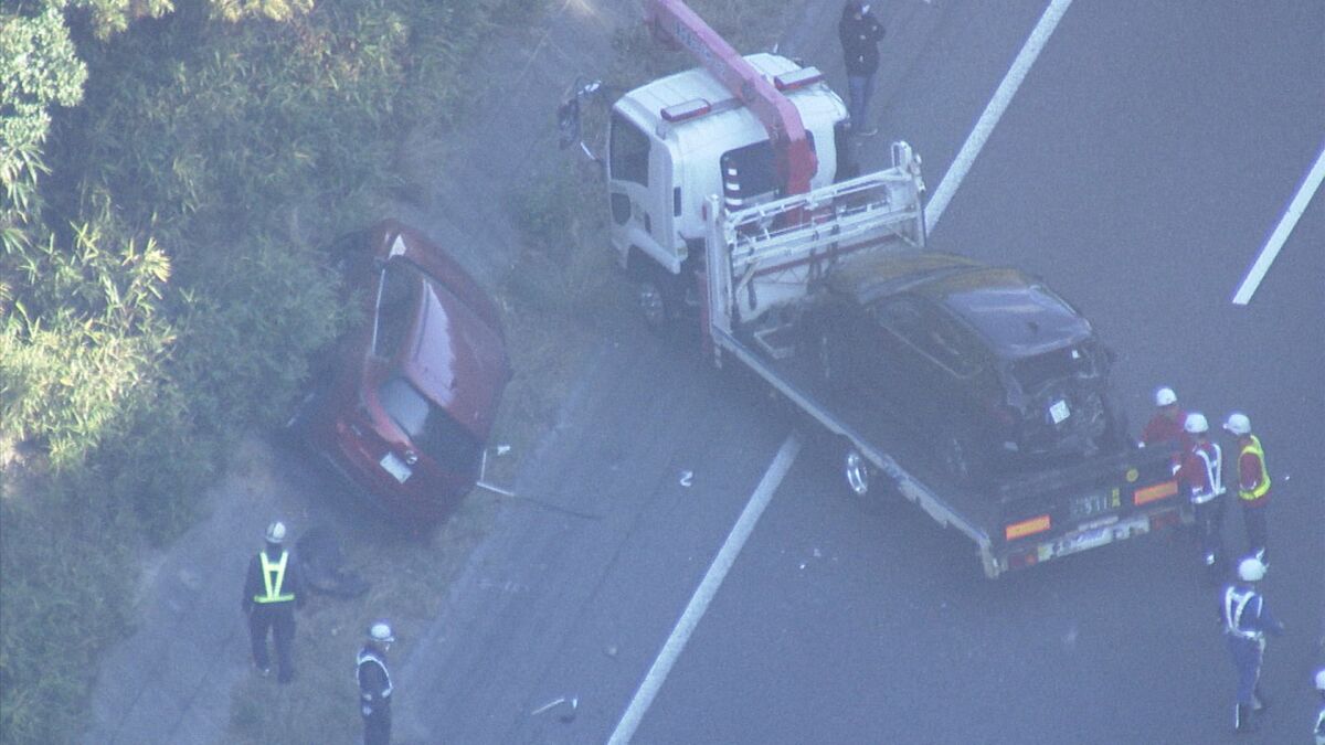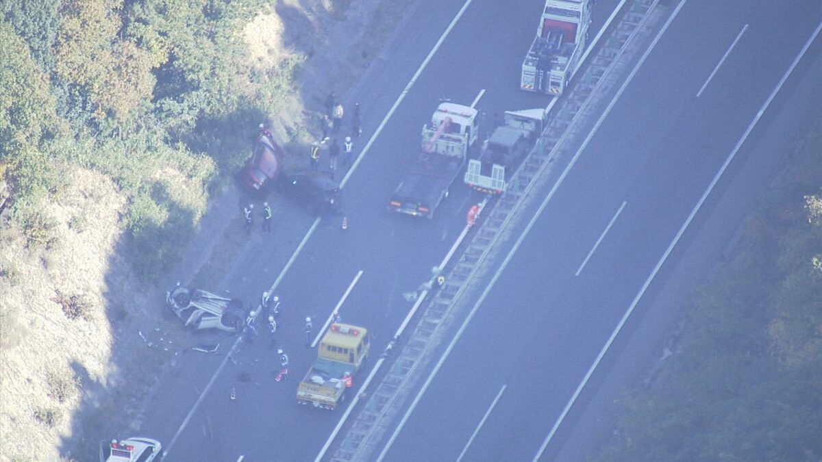 23日午前10時半ごろ、東広島市の山陽自動車道上りで、車3台が絡む事故があり、9人が軽いけがをしました。その50分後には、事故現場から約6キロ離れた西条インターチェンジの近くで、車7台が絡む事故が起き、12人が軽いけがをしたということです。