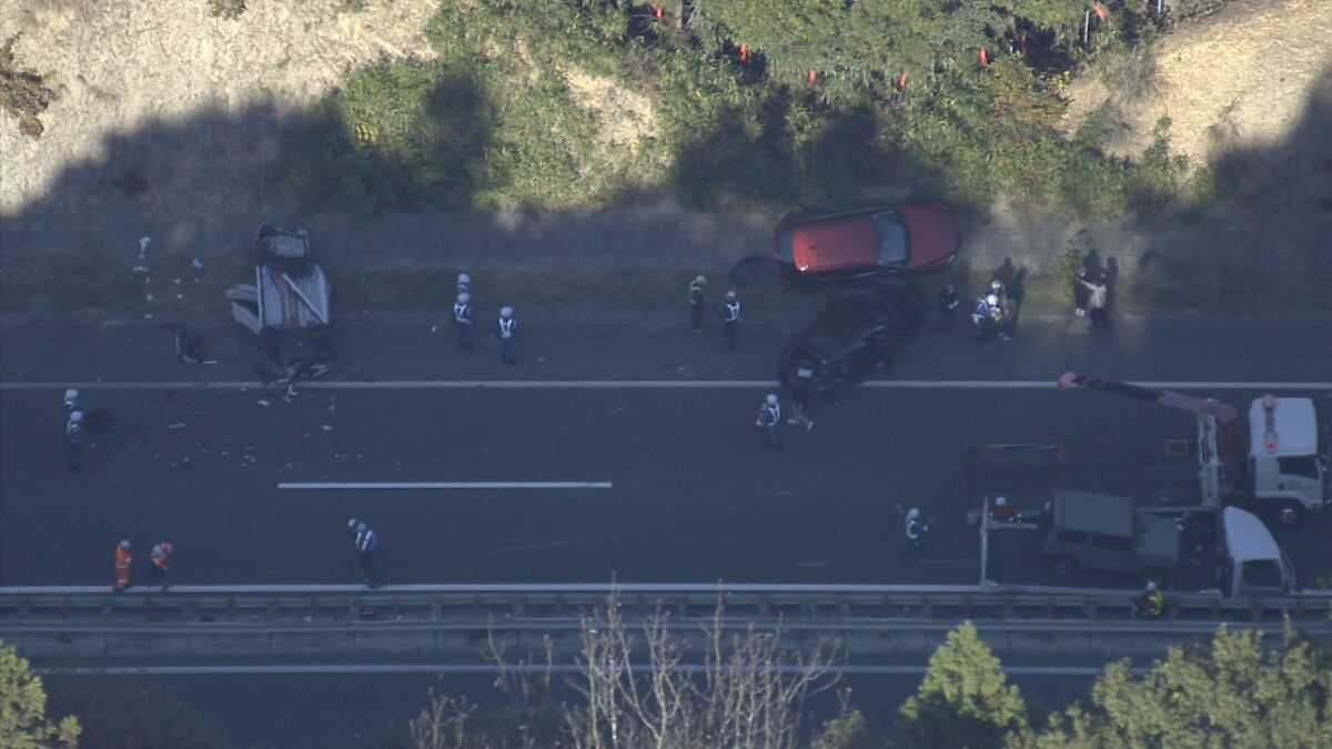 警察は、1件目の事故で渋滞していた車にトラックが衝突して、2件目の事故が起きたとみて調べています。