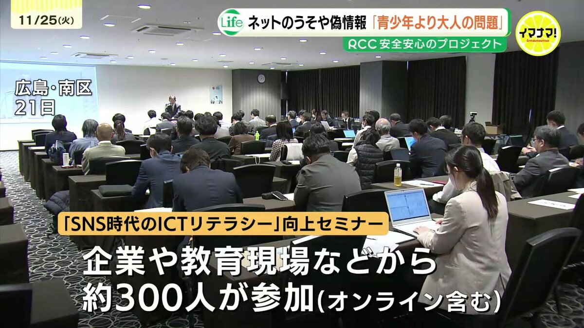 子どもや中学生や高校生というよりも、大人の問題になっています。インターネット上のウソや誤った情報に惑わされないよう、広島市でICTリテラシーセミナーが開かれました。