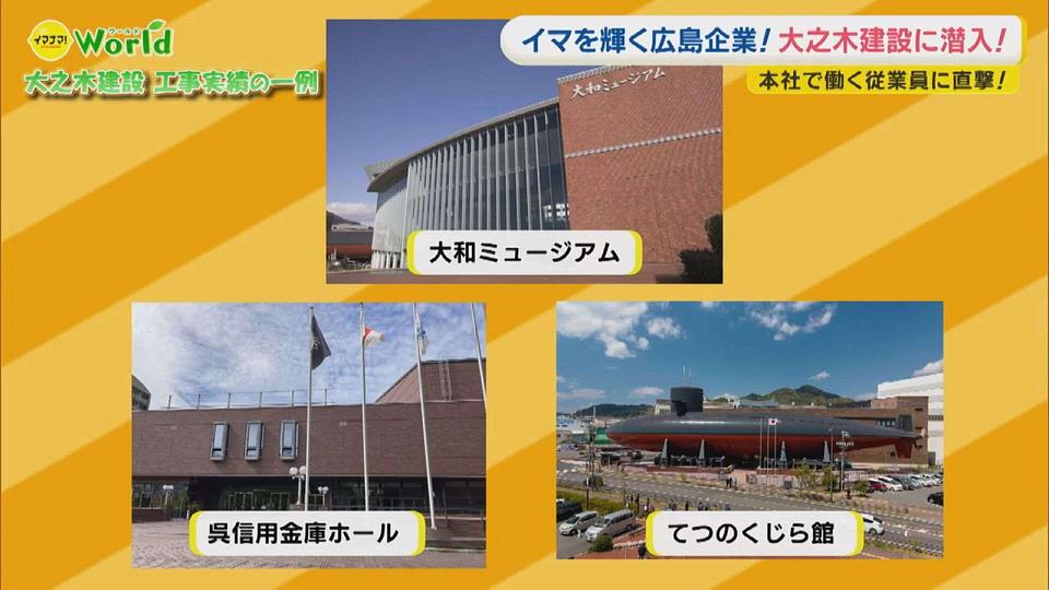 大和ミュージアム、てつのくじら館、呉信用金庫ホール など、数多くの街のシンボル的建物の建築に携わってきた大之木建設。