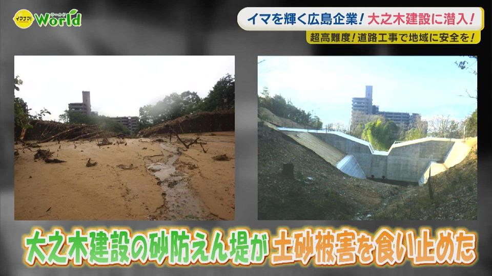 令和2年7月6日の豪雨で土石流が発生した広島市西区の井口台では、大之木建設が施工した砂防えん堤が土石流を食い止めたという事例も。
