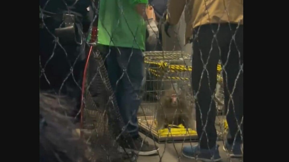 24日の夕方、広島市中区西平塚町で捕獲された一匹のサル。