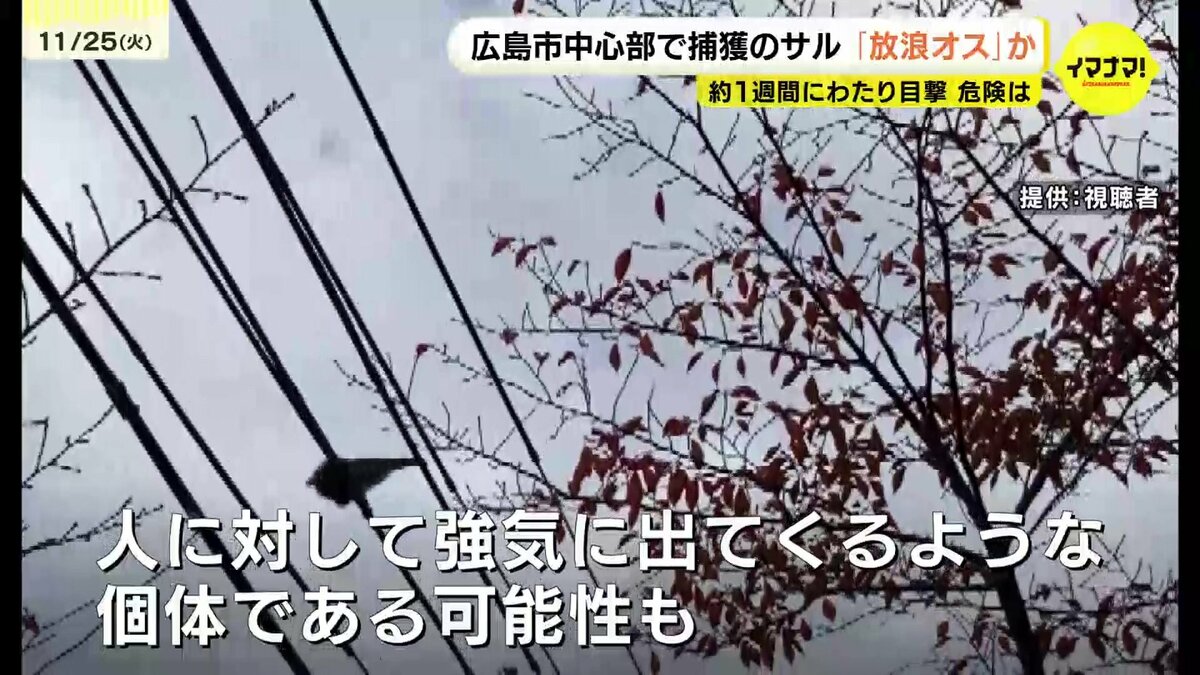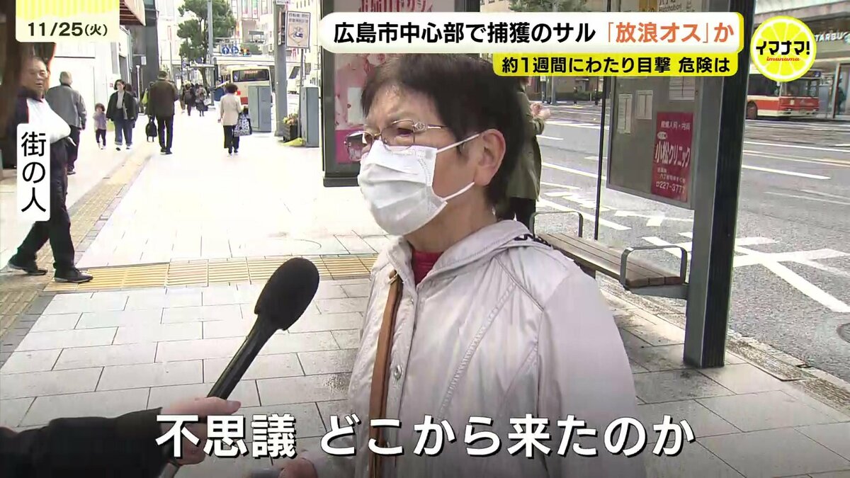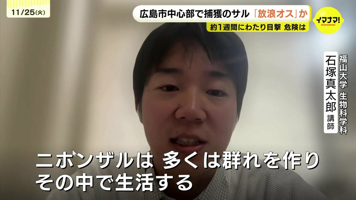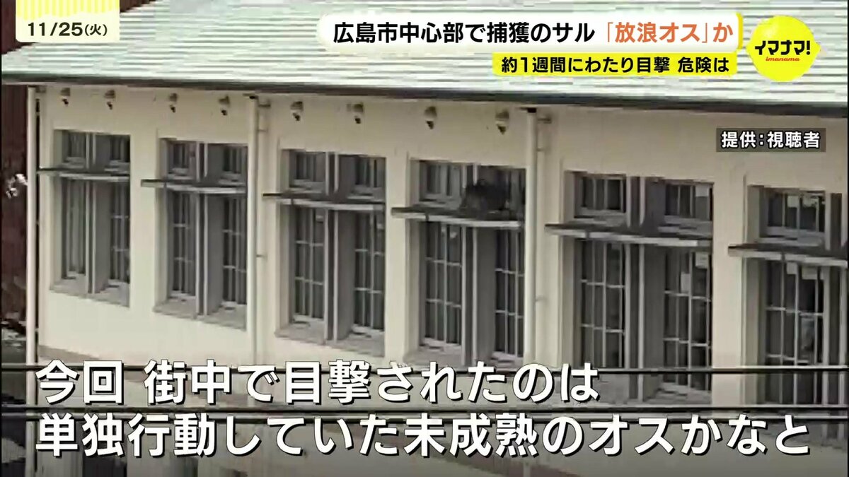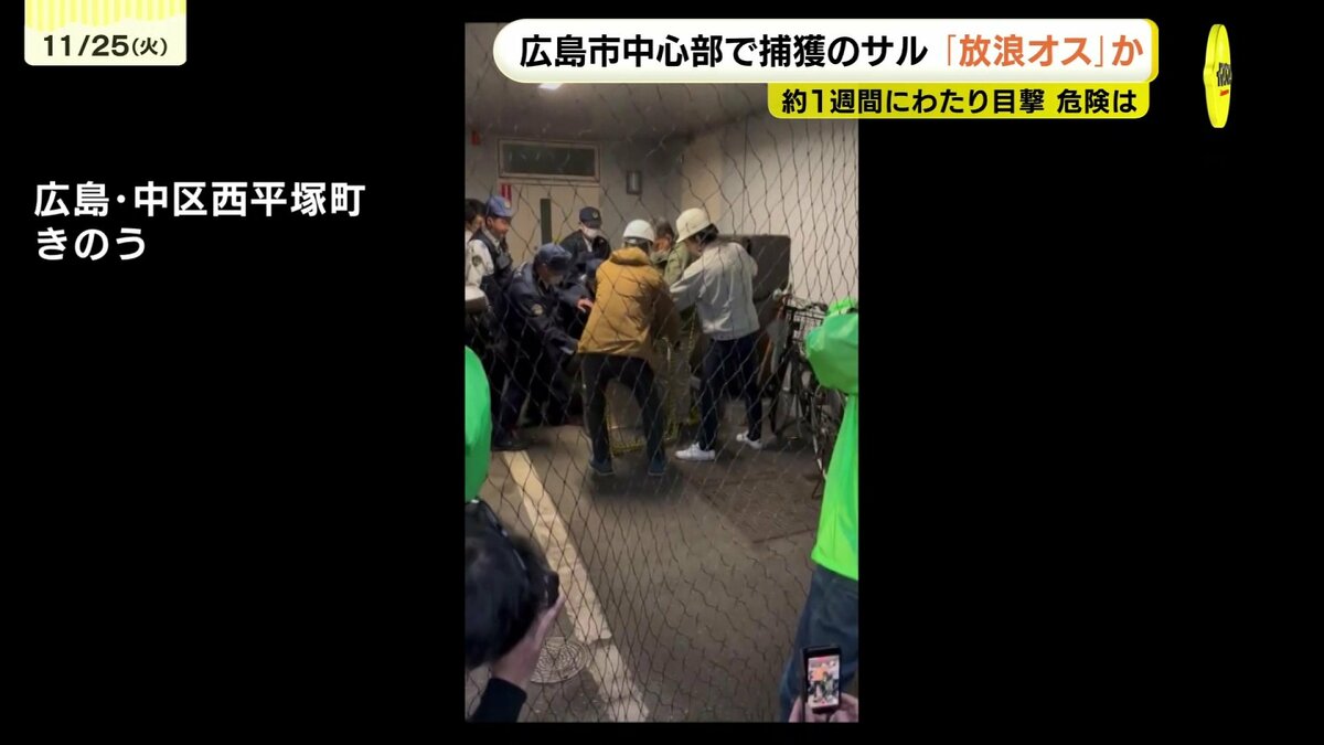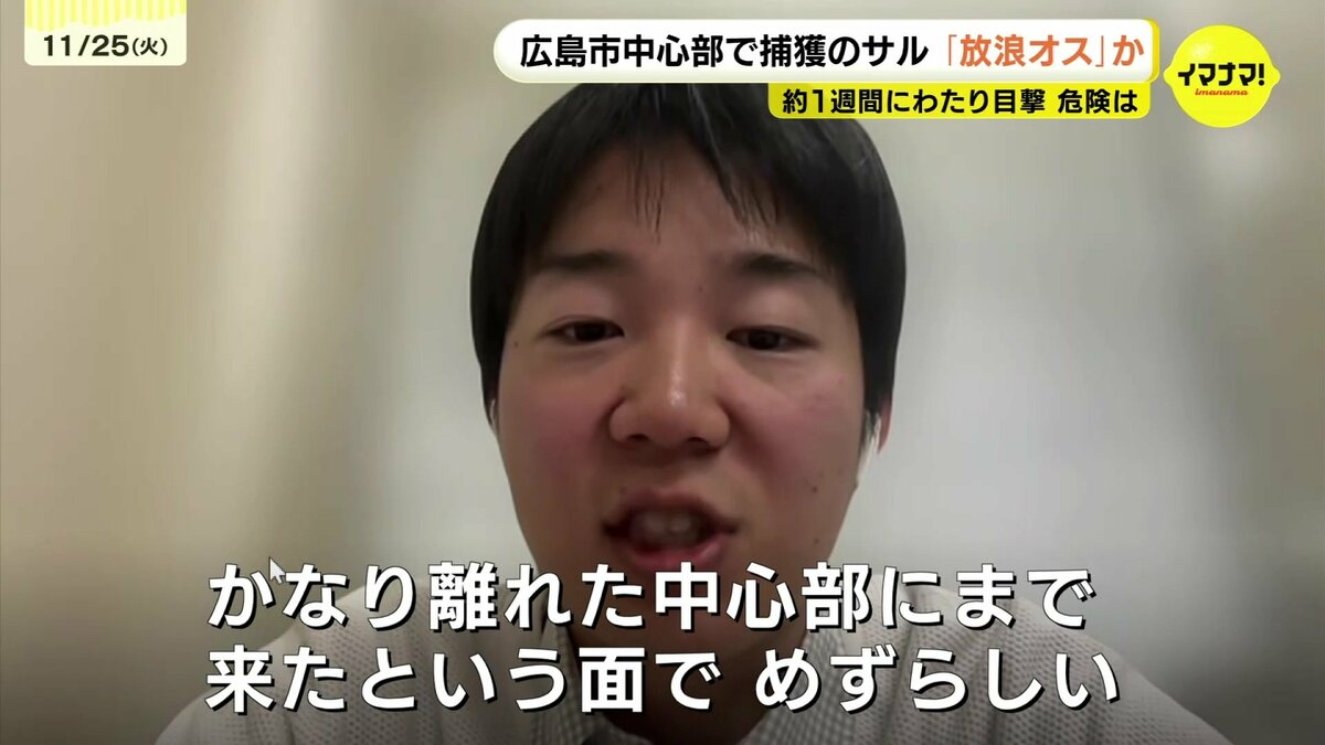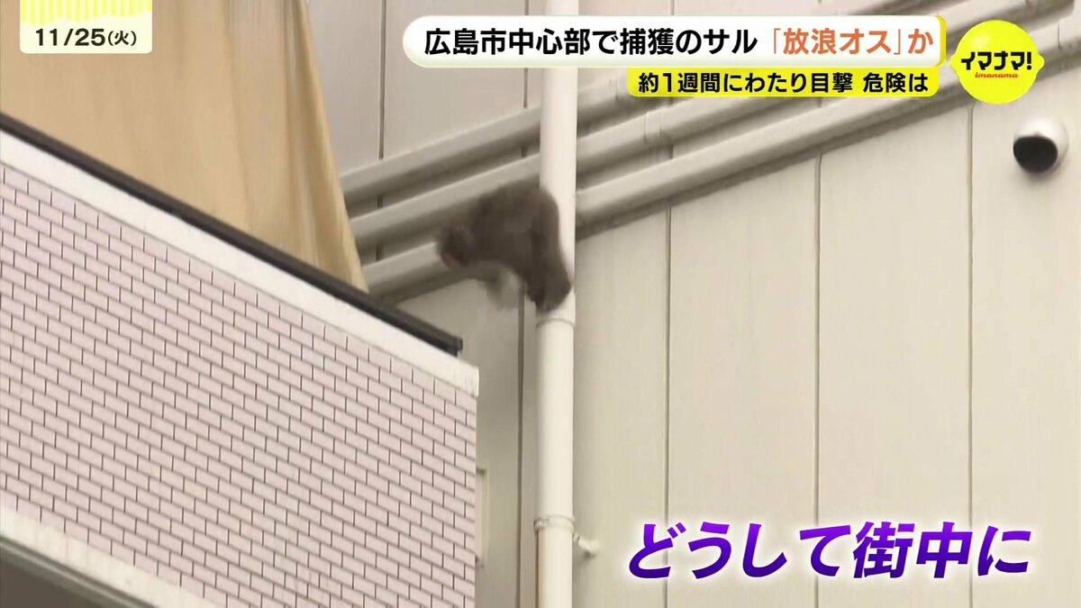 約一週間にわたって広島市中心部で目撃されていたサルが、24日に捕獲されました。山の中で群れで生活しているはずのサルは、なぜ、広島の街中に現れたのでしょうか?