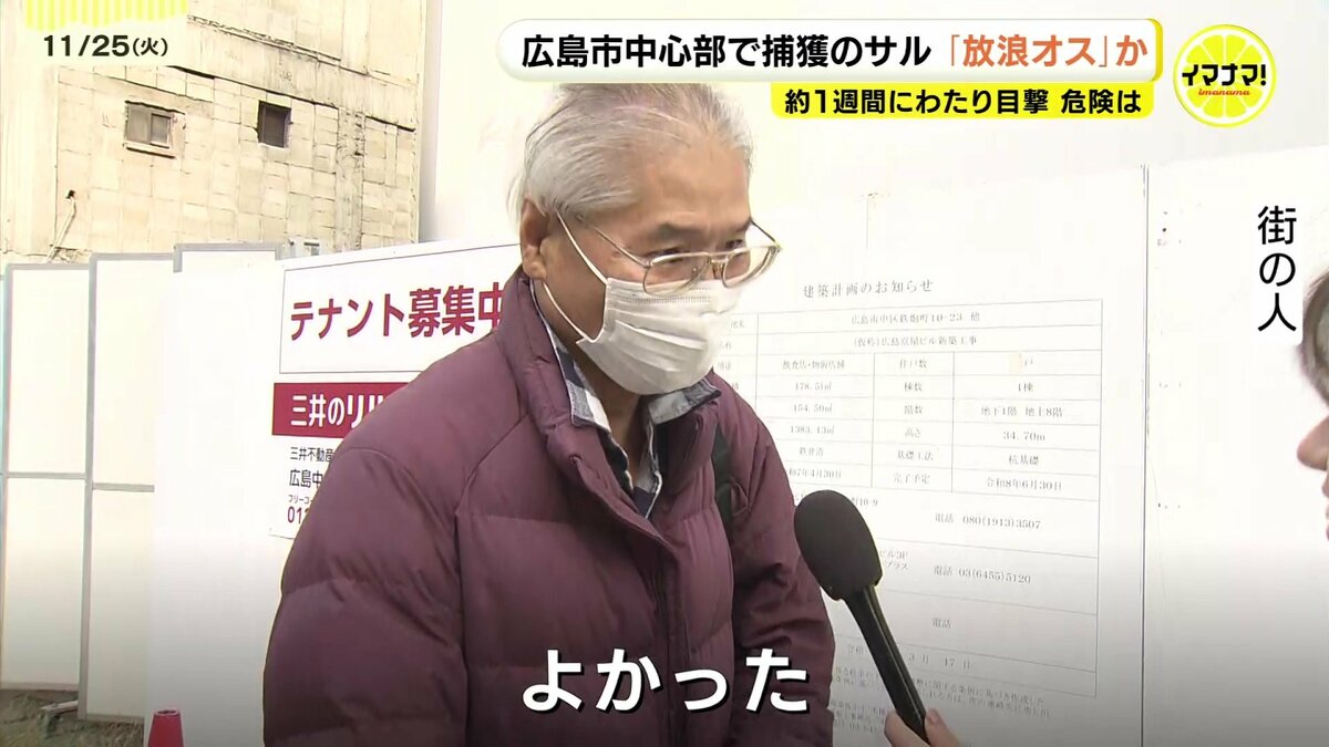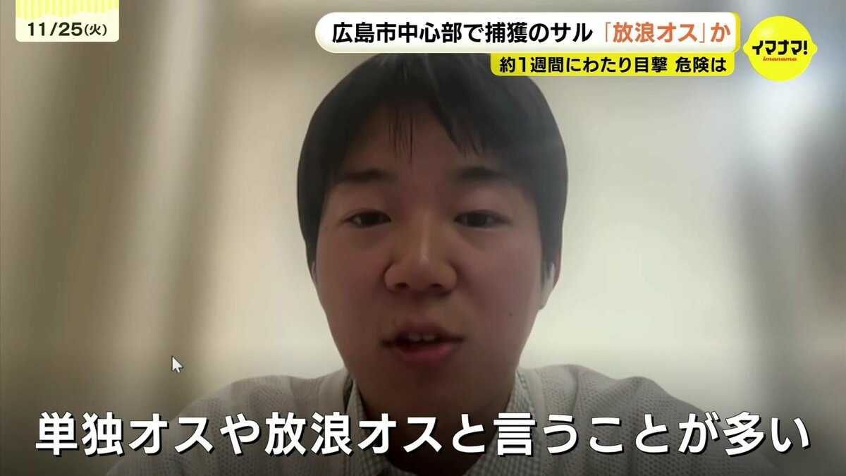 今回捕獲されたサルの性別はわかっていませんが、生まれ育った群れを離れ、新しい群れを探している「放浪オス」が、市街地に入り込むことは時折あるといいます。ただ、広島市の地形を考えると珍しいといいます。