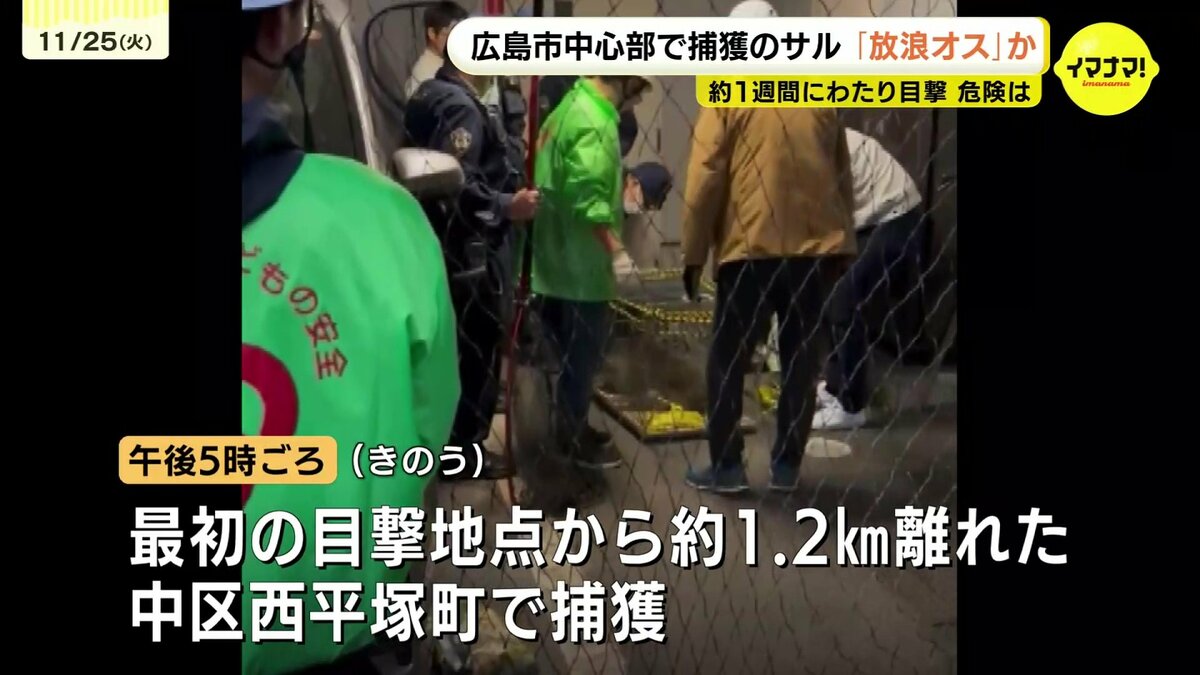 約1週間にわたって、目撃情報が相次いでいたサル。出没した場所はいずれも広島市中心部でした。