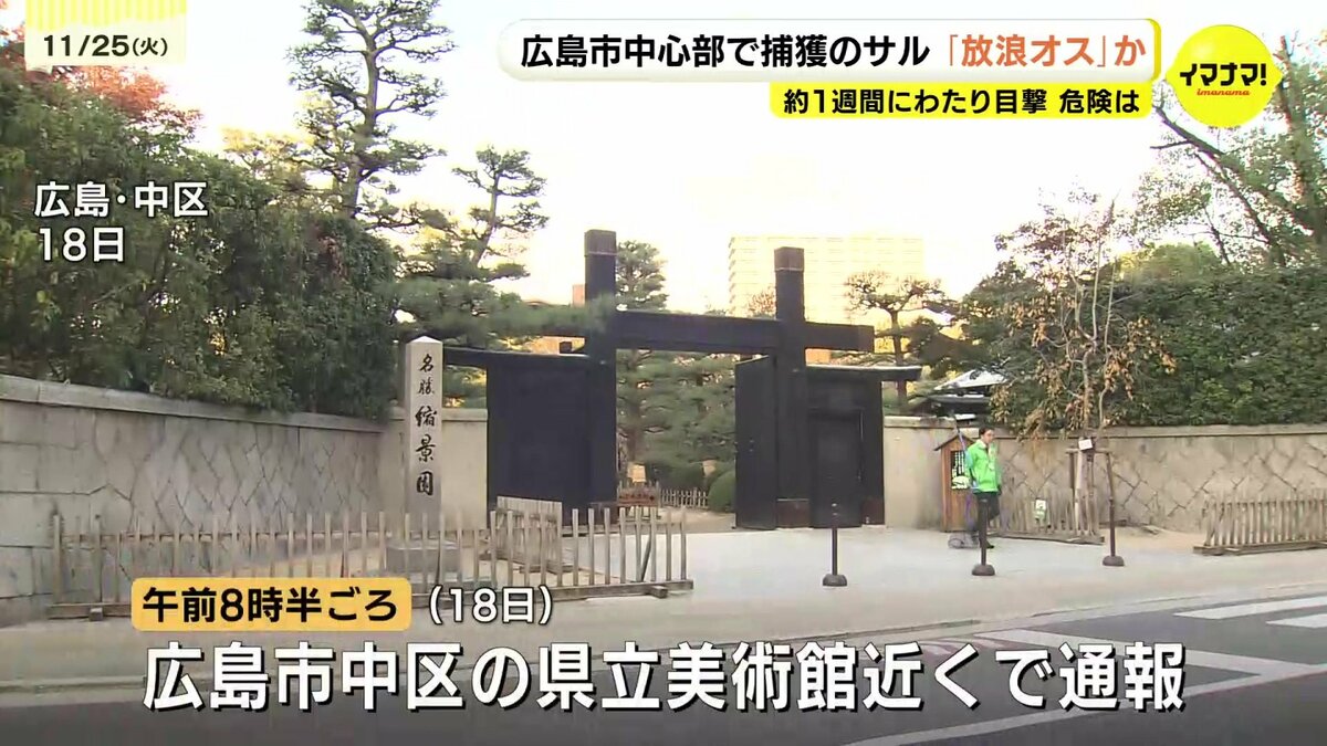 最初の通報があったのは18日です。午前8時半ごろ、広島市中区の県立美術館近くで、目撃者から通報がありました。その後サルは、周辺の学校や縮景園などを移動した後、行方が途絶えます。