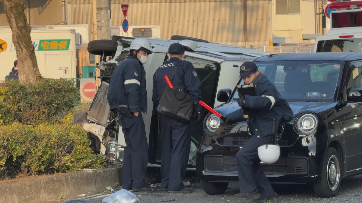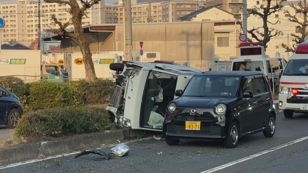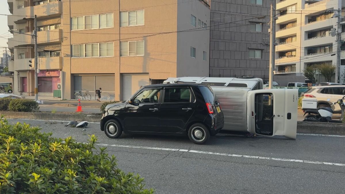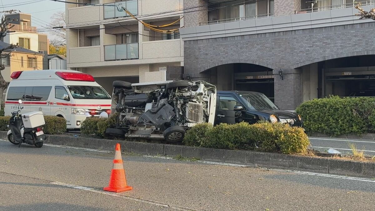 警察によりますと、26日午前7時ごろ、広島市中区白島九軒町で、男が乗っていた軽バンが中央分離帯に衝突して、対向車線を走っていた車にも衝突。合わせて3台が絡む事故となりました。