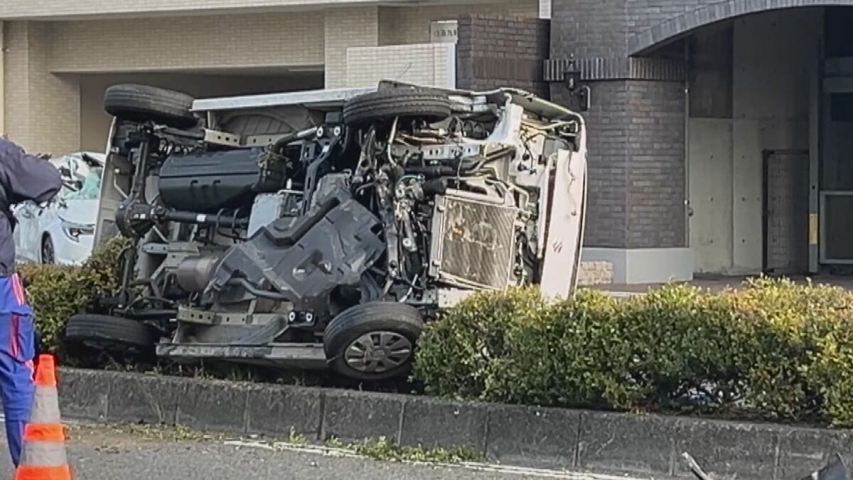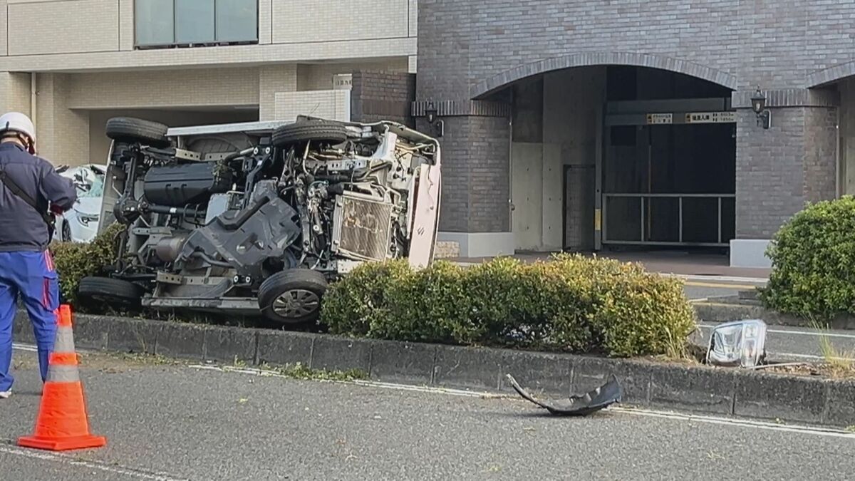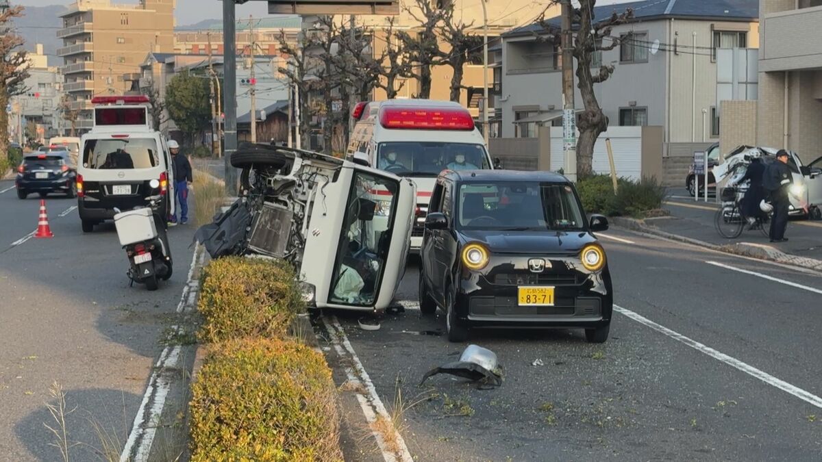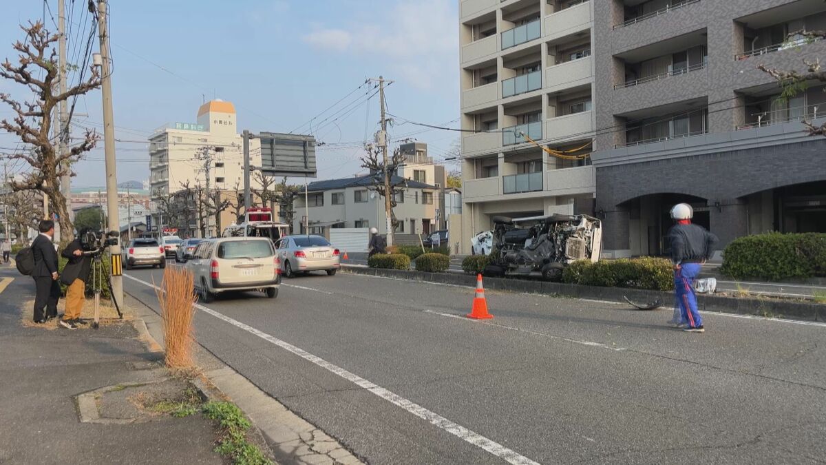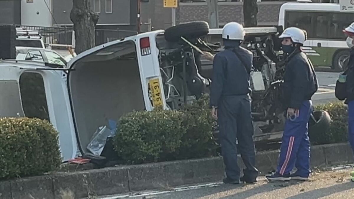 警察によりますと、26日午前7時ごろ、広島市中区白島九軒町で、男が乗っていた軽バンが中央分離帯に衝突して、対向車線を走っていた車にも衝突。合わせて3台が絡む事故となりました。
