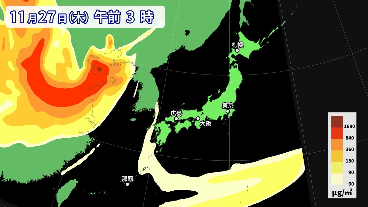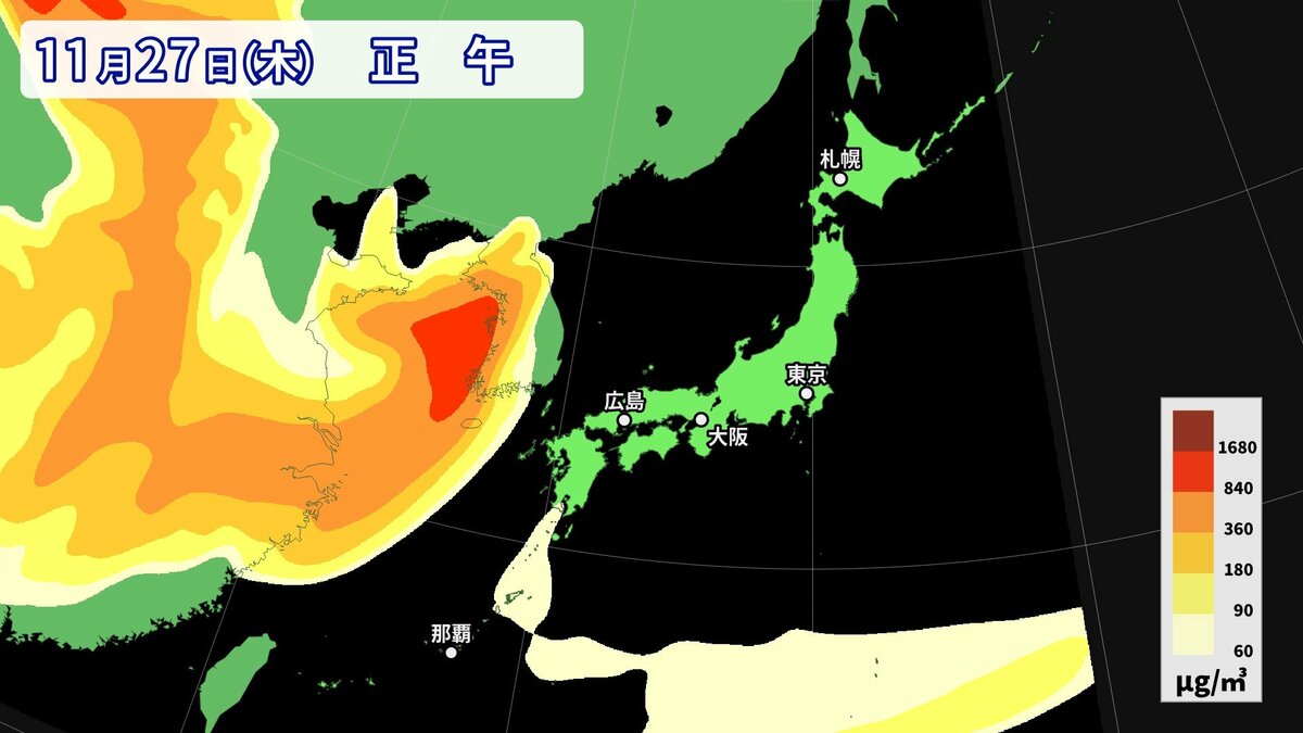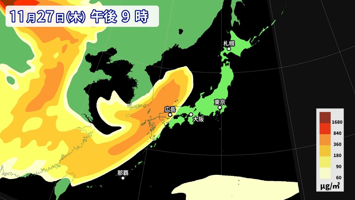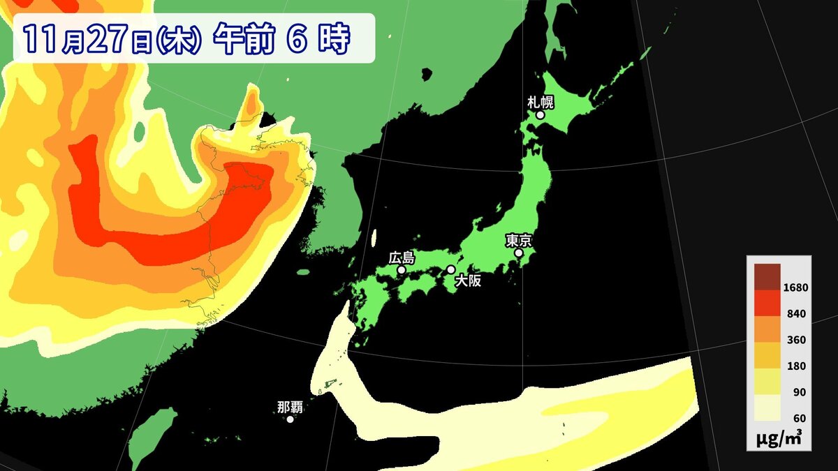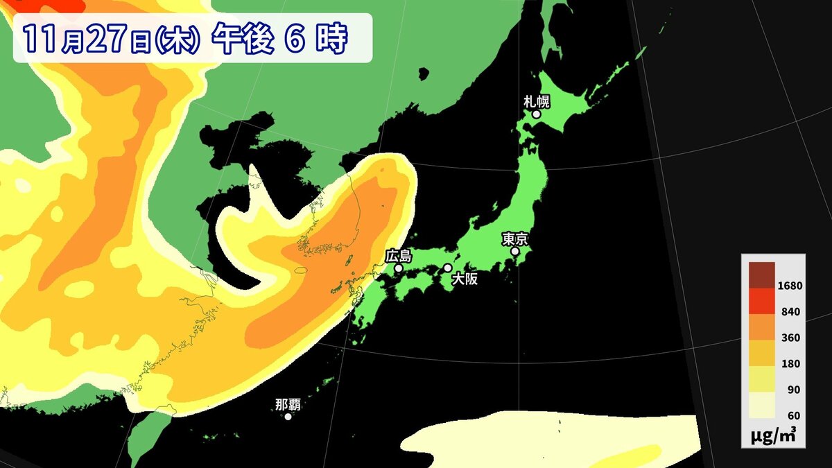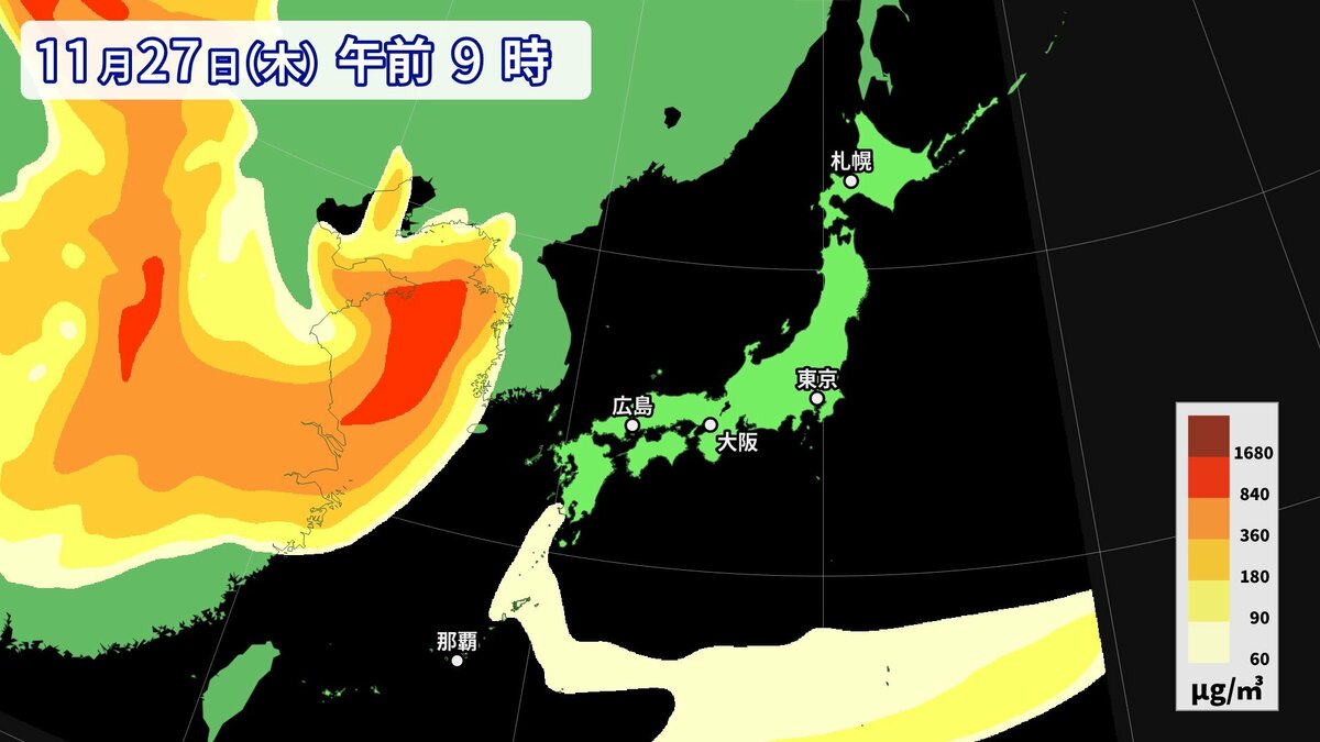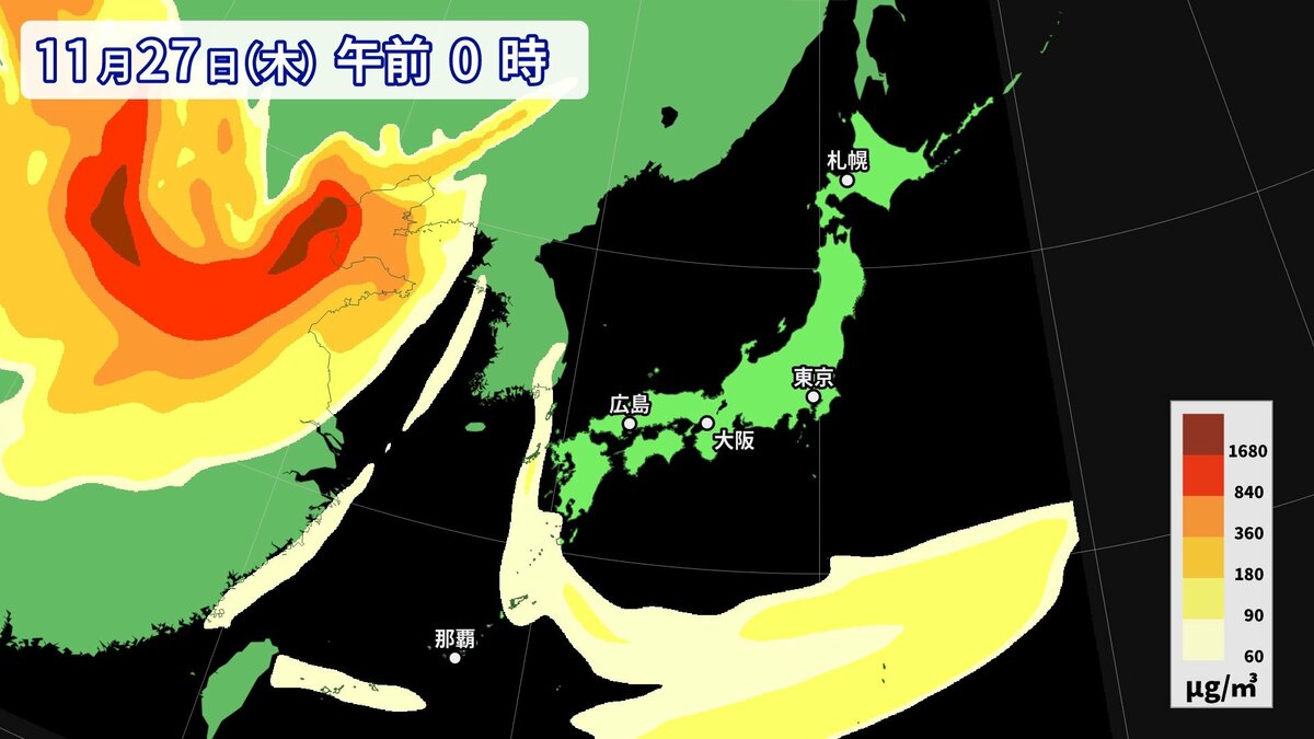 27日から28日にかけて前線が西~北日本を通過する見込みで、その通過後は全国的に黄砂が飛来するおそれがあります。気象庁は、27日から28日にかけて、西日本の広い範囲で黄砂が予想され、視程が10km未満となる見込みと発表しました。