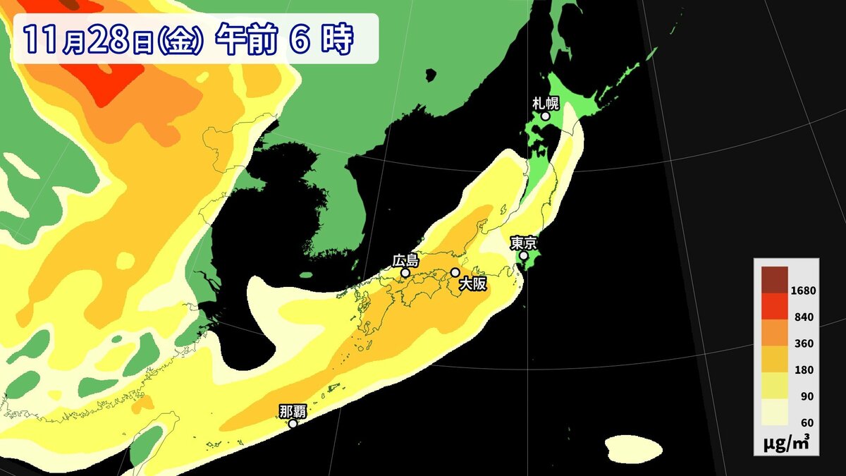 25日から26日にかけて、西日本から南西諸島の広い範囲で黄砂が予想されていましたが、27日以降再び、全国的に黄砂が飛来するおそれがあります。