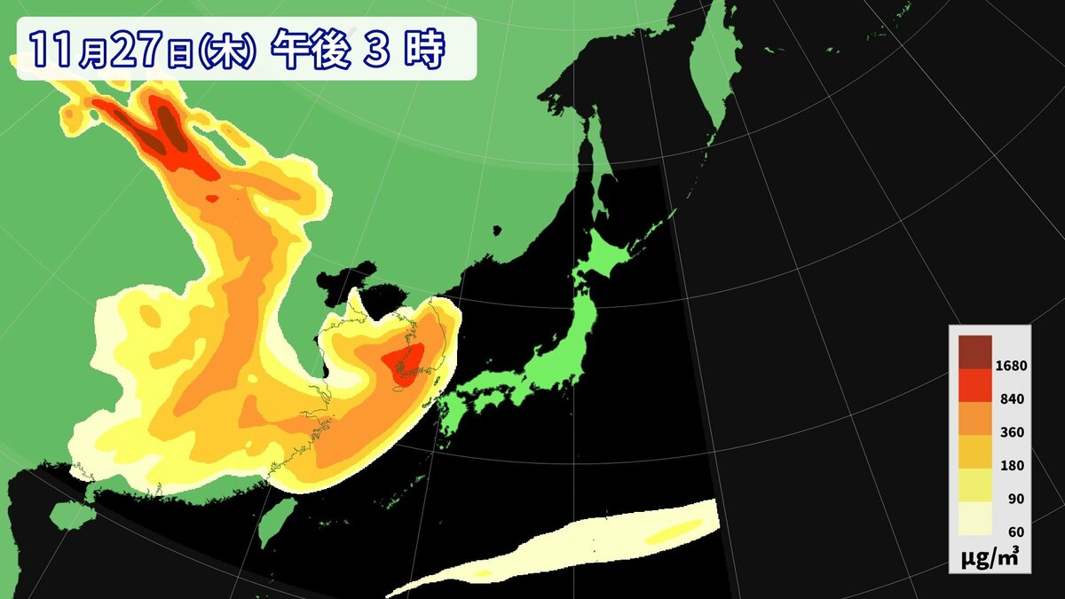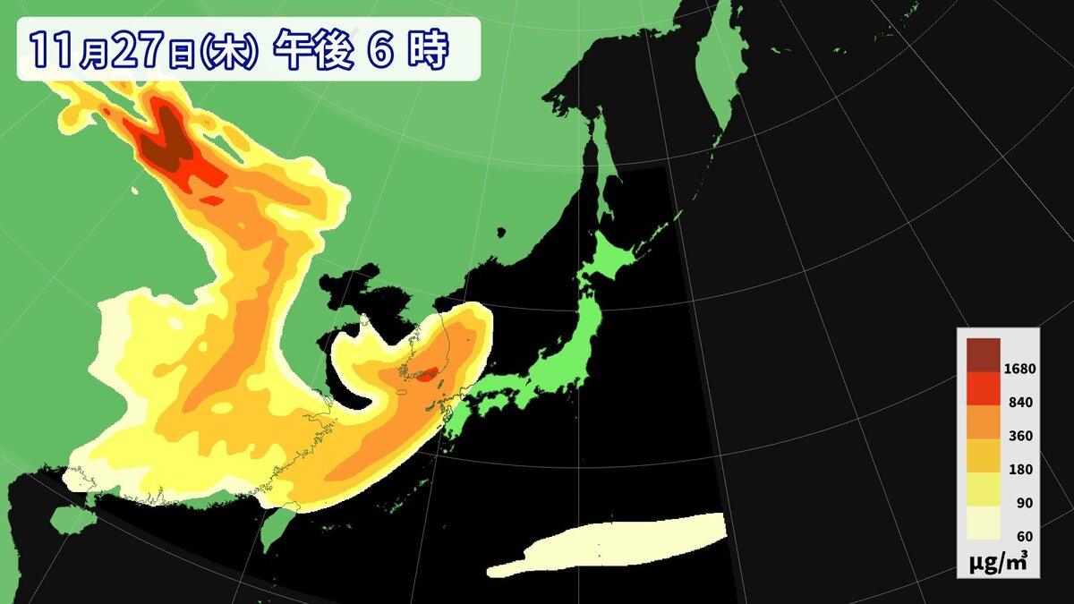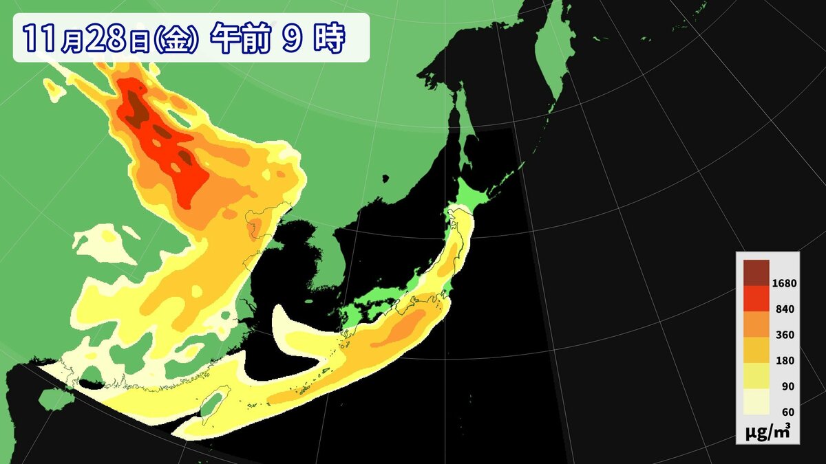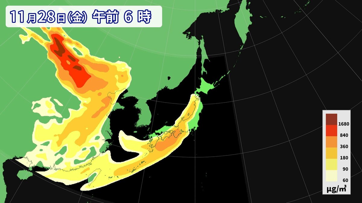 27日から28日にかけて、西日本から東日本の広い範囲で「黄砂」の飛来が予想されています。