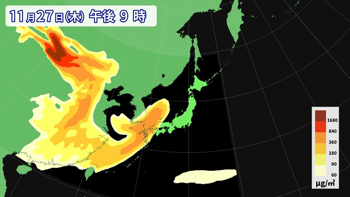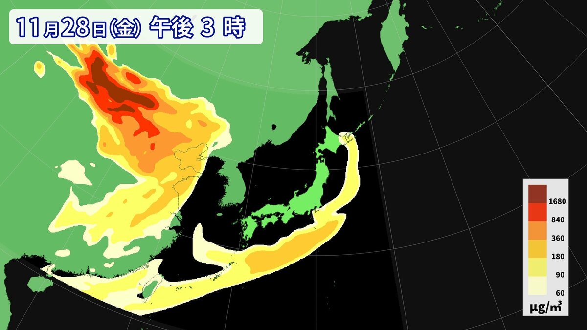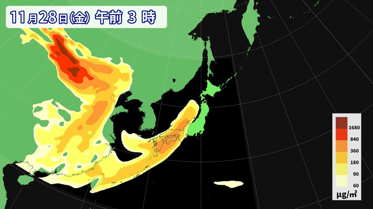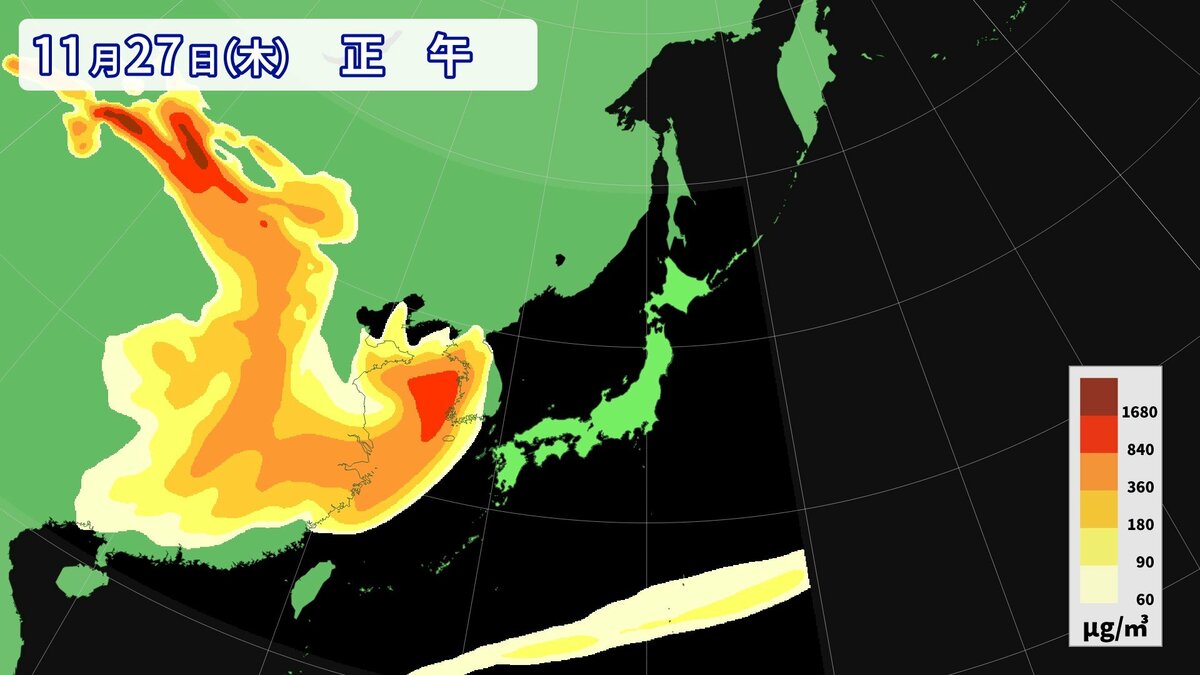 27日から28日にかけて、西日本から東日本の広い範囲で「黄砂」の飛来が予想されています。