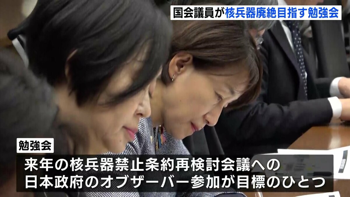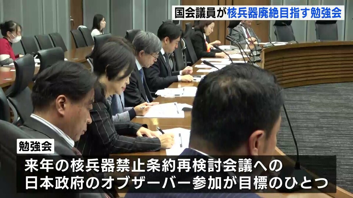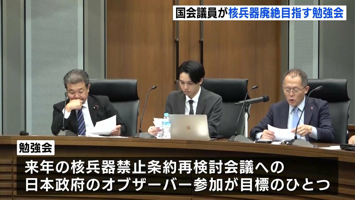 2026年の核兵器禁止条約再検討会議への日本政府のオブザーバー参加を目標のひとつに掲げる勉強会。議員たちは、今後も月1回のペースで集まることにしています。