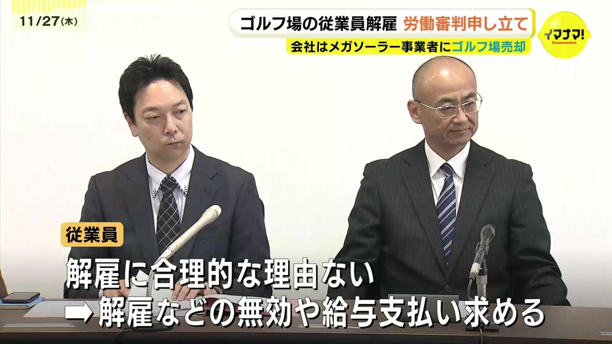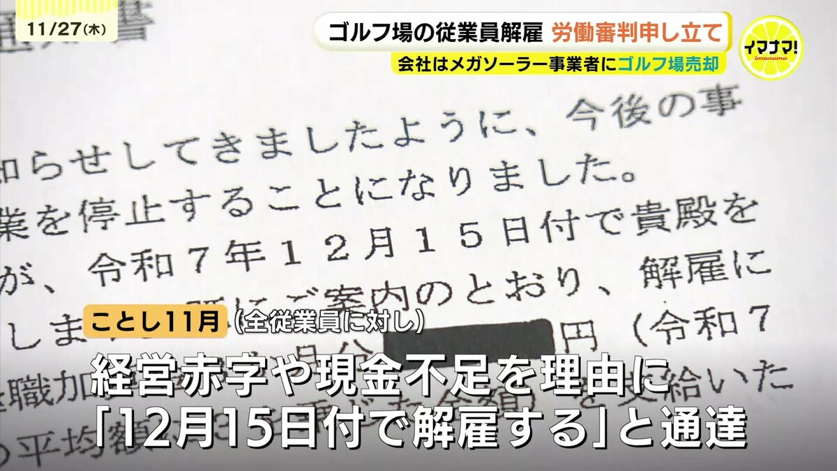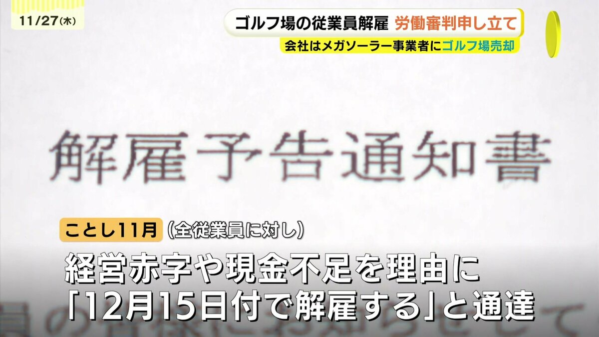 申立書によりますと、ことし11月にゴルフ場の全従業員に対し、会社の経営赤字や現金の不足を理由に、「12月15日付で解雇する」などと会社の代表者から通達がありました。
