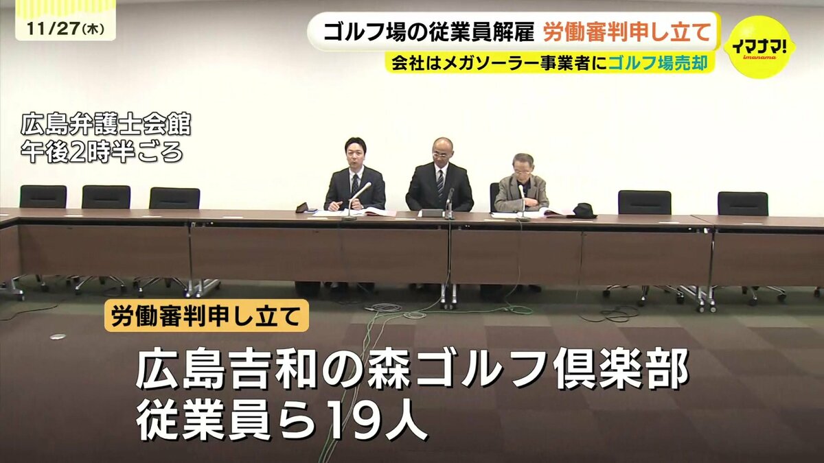 広島県廿日市市にあるゴルフ場「広島吉和の森ゴルフ倶楽部」の従業員ら19人が合理的な理由無く解雇されたなどとして、広島地裁に労働審判を申し立てました。