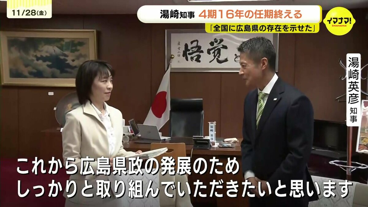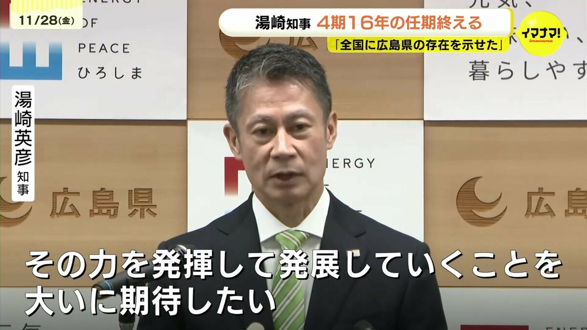 湯崎知事「長かったし、時間が実際どう感じられたかというとやはり短かった。あっという間。広島県は大きな底力を持っている。私のこの16年間は底力を引き出すために汗をかいてきた16年だった。その力を発揮して発展していくことを大いに期待したい」