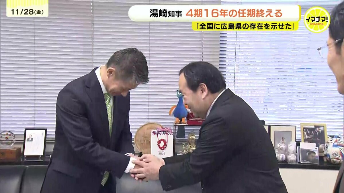 広島県の湯崎英彦知事が4期16年の任期を終えました。最終日となった28日、新しい知事に引き継ぎを行うなど知事として最後の執務を行いました。