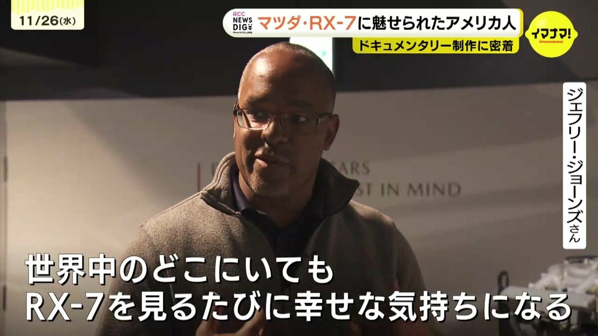 今月、一人のアメリカ人が広島にやってきました。ジェフリー・ジョーンズさん(37)。ニュージャージー州に住む、3児の父親です。ジェフさんが追い続けるのは、マツダのスポーツカー「RX-7」。この車にまつわるドキュメンタリーを作るため、撮影を続けています。ジェフさんを突き動かすものは何なのか。広島での取材に密着しました。