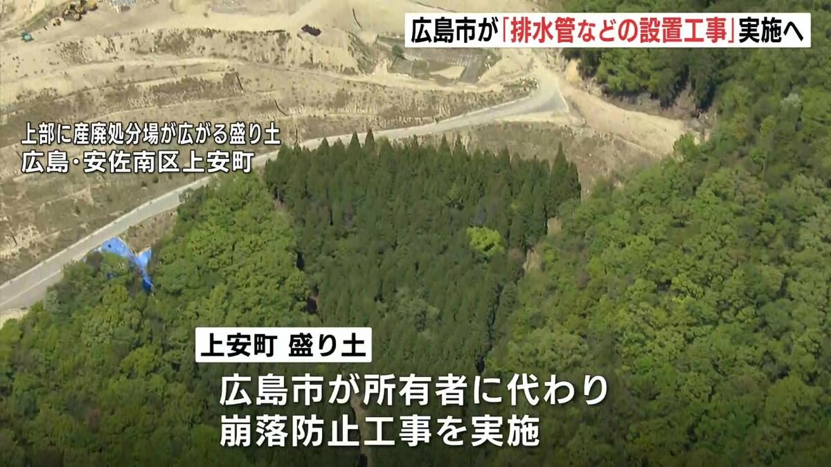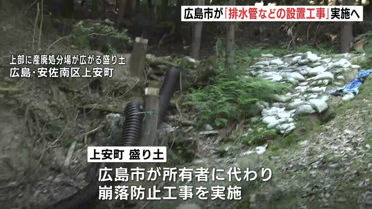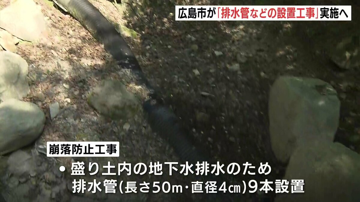 広島市安佐南区の不適切な「盛り土」の崩落防止対策で、広島市は、排水管などを設置する工事を12月下旬から始めます。