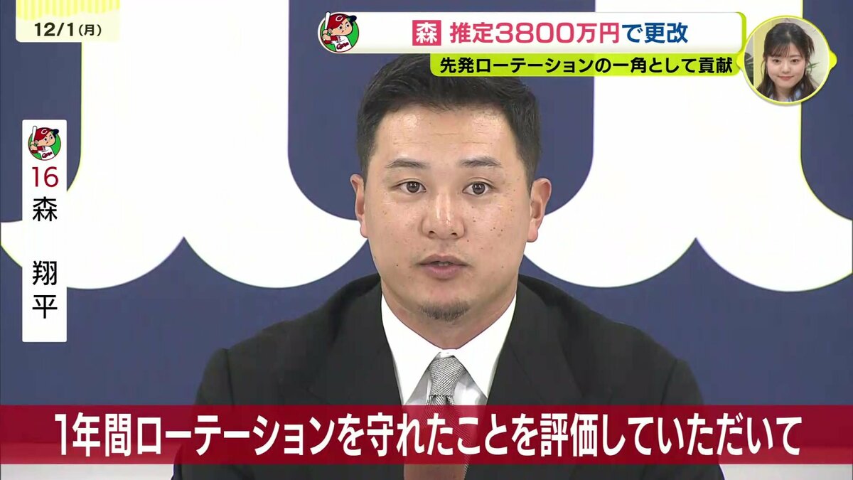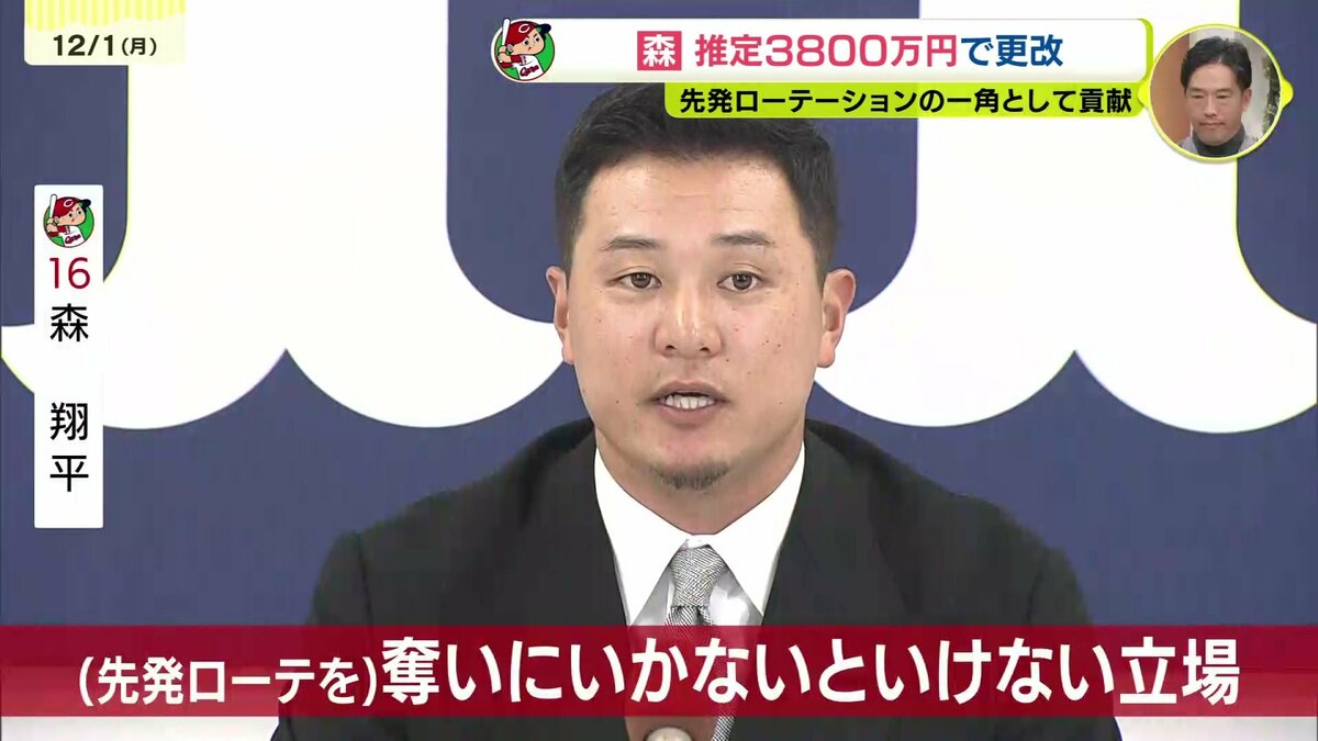 今季プロ4年目で初の開幕ローテーションをつかみ取った森翔平は推定年俸3800万円で契約を更改しました。