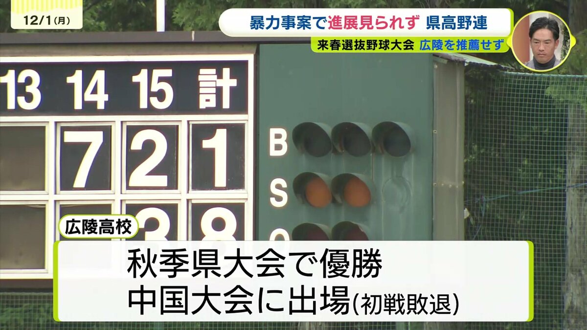 広島県高野連は暴力問題が起きた広陵高校を来年春の選抜高校野球大会に推薦しないことを決めました。中国大会出場校を推薦しないのは異例のことです。