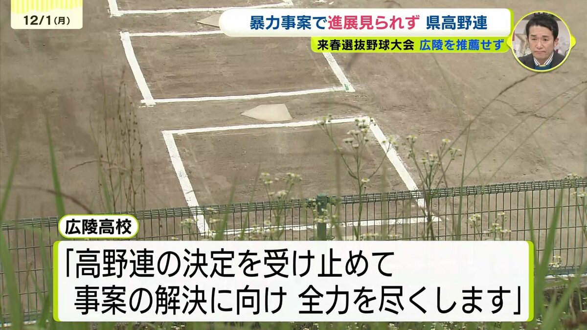 推薦しない理由について県高野連は「広陵高校が設置した第3者委員会が継続して行われているなど事態に進展が見られないことから総合的に判断した結果」と説明しています。