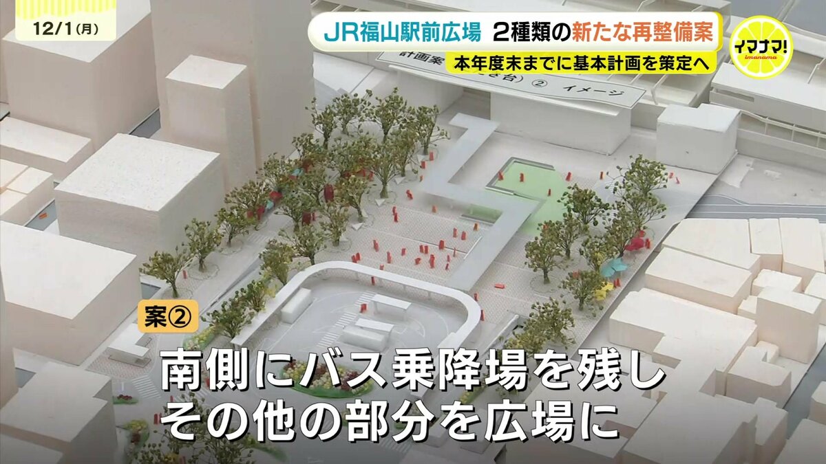広島県福山市のJR福山駅前の広場について、福山市は2種類の新たな再整備案を示しました。