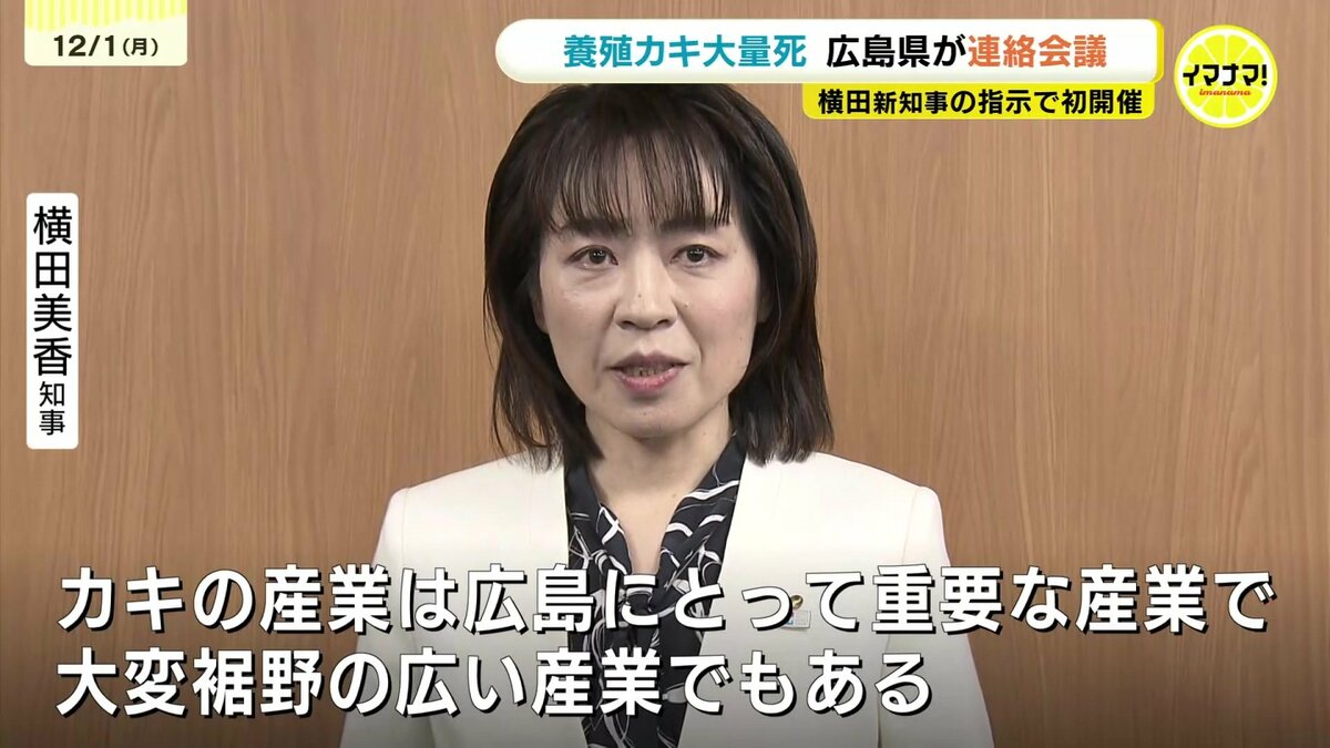 広島県内では9月以降、特産品である養殖カキが大量死する被害が出ています。横田新知事の指示で初めて開かれた連絡会議では、農林水産局のほか商工労働局などカキ産業に関わる6つの部局が集まって被害の確認などを行いました。
