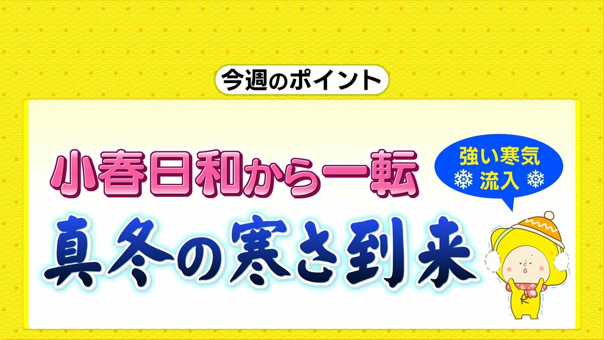 小春日和はあすまでで、あさって以降上空には真冬並の寒気が流れ込み、山地を中心にまとまった雪になる可能性があります。気温は、12月中旬から真冬並の寒さになるでしょう。