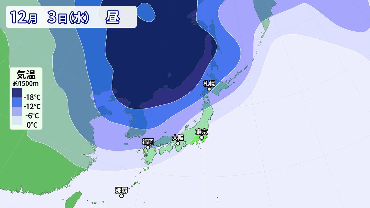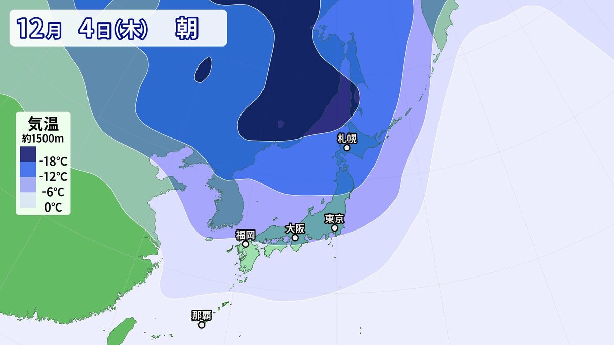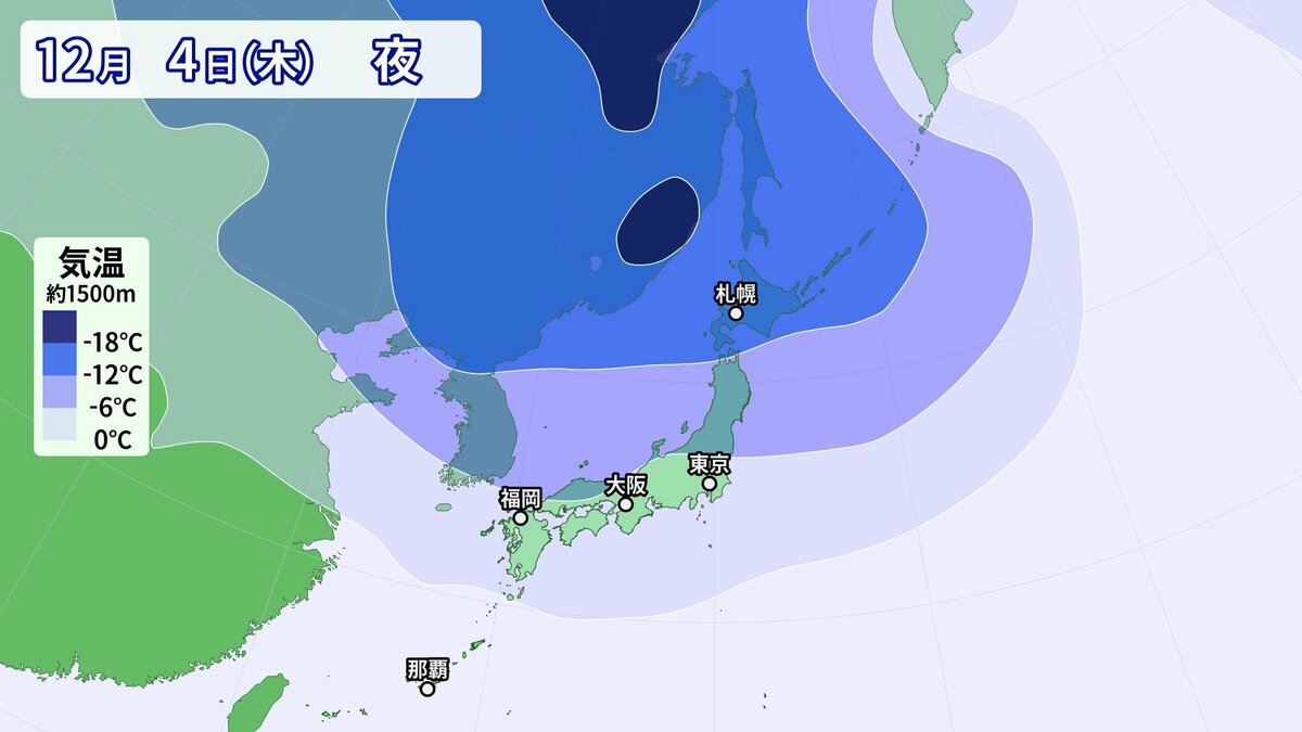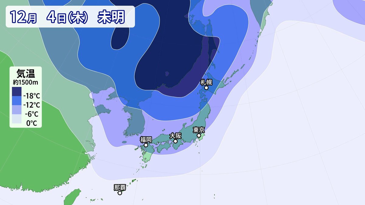 気象庁によりますと、日本付近は3日以降冬型の気圧配置が強まり、4日にかけて、この時期としては強い寒気が流入する見込みです。