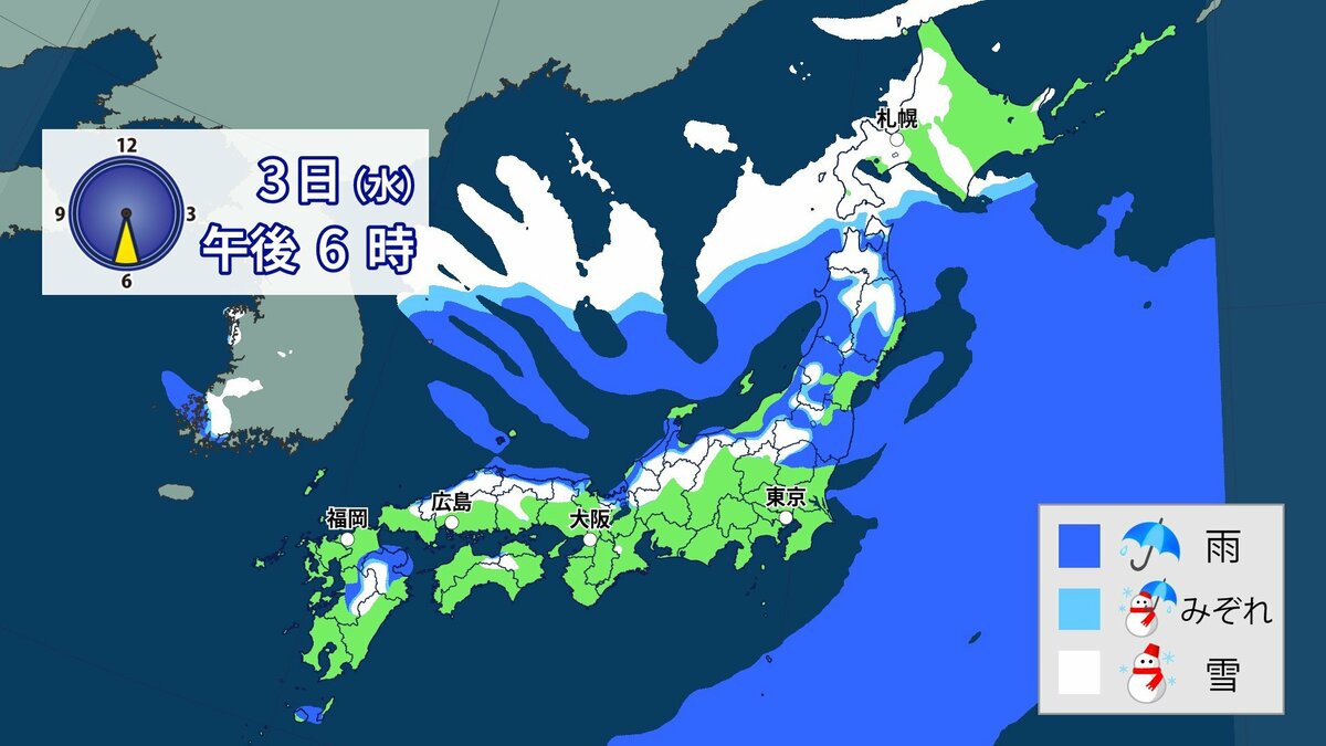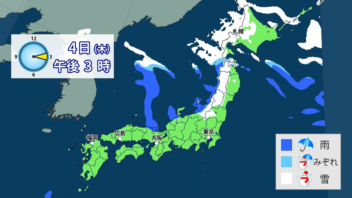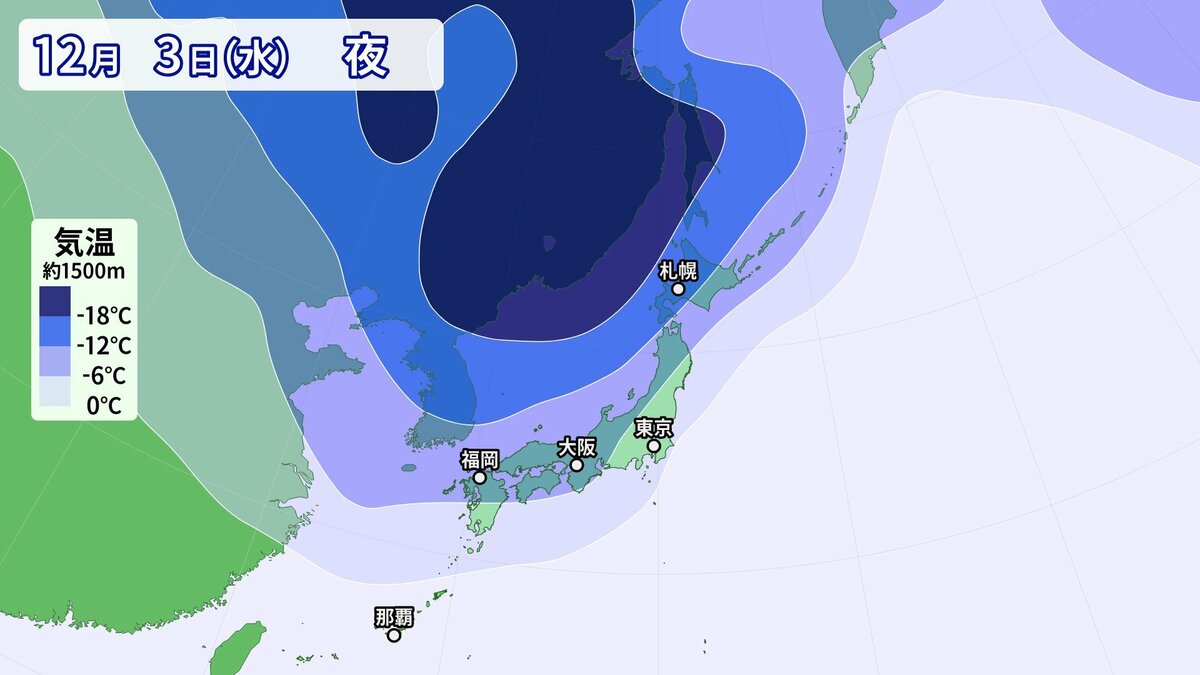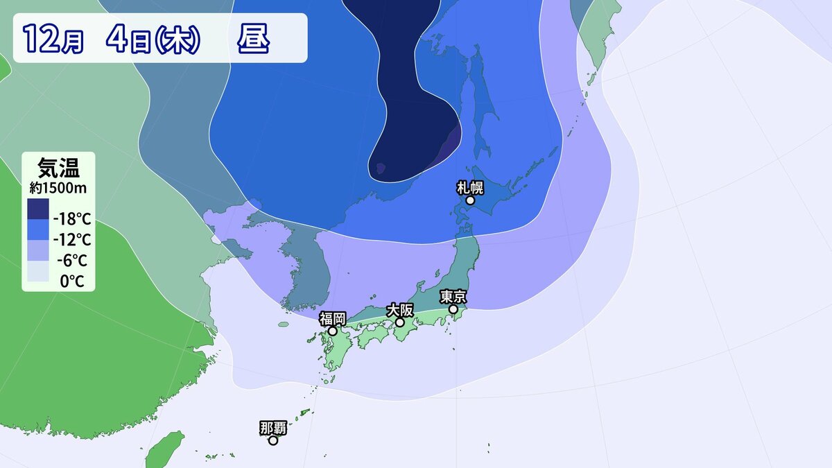 気象庁によりますと、日本付近は3日以降冬型の気圧配置が強まり、4日にかけて、この時期としては強い寒気が流入する見込みです。