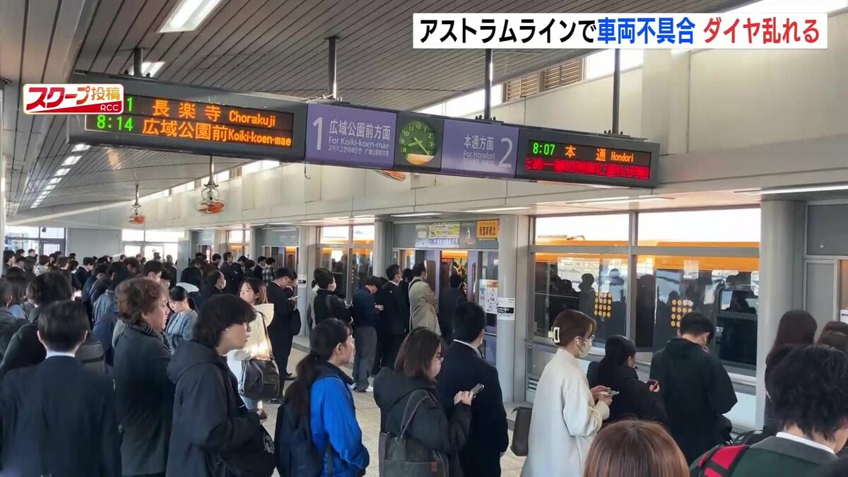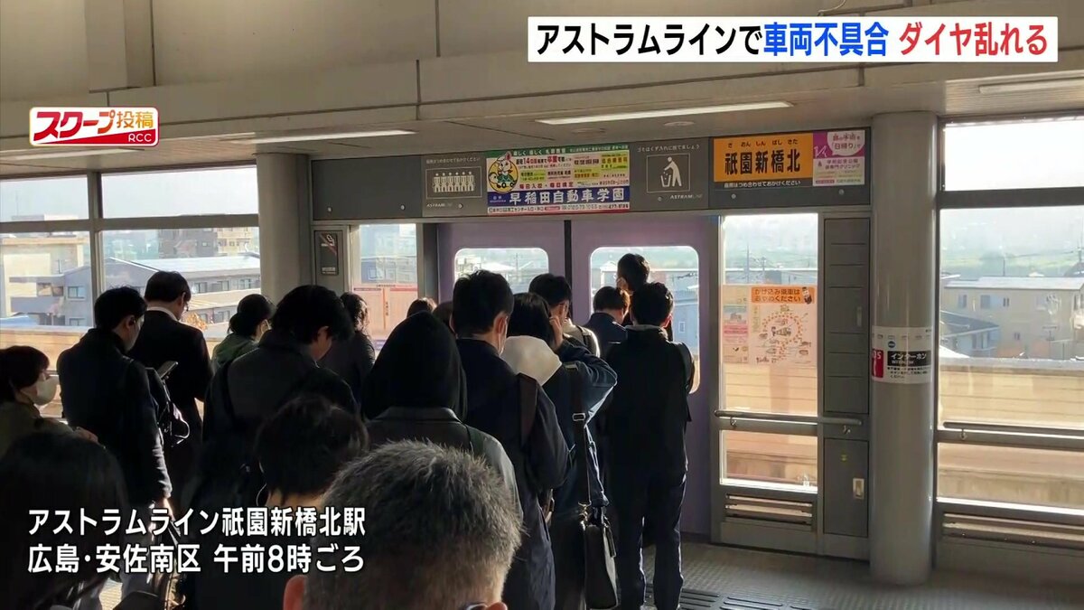 広島市を走るアストラムラインで2日、通勤・通学の時間帯に車両の不具合があり、ダイヤが大幅に乱れました。