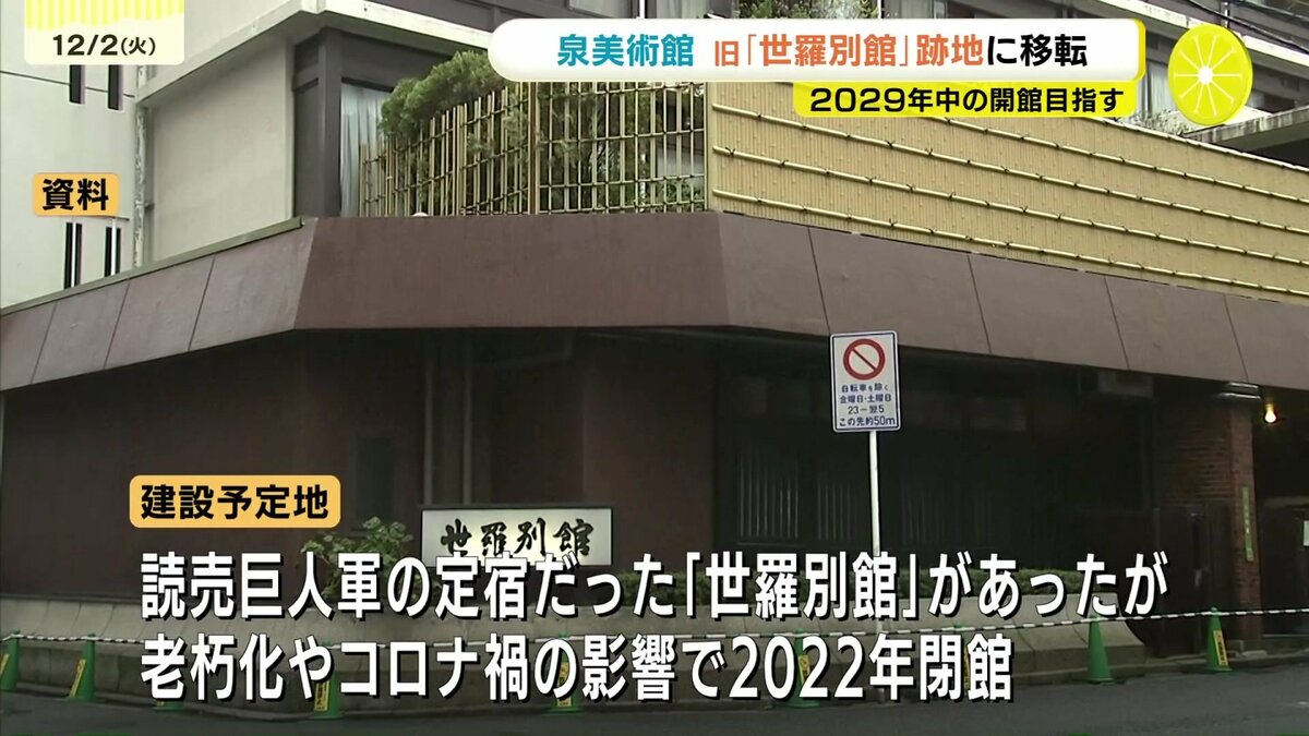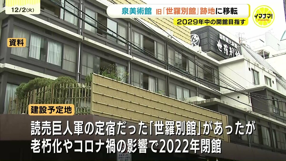 「泉美術館」が移転するのは、広島市中区三川町です。この場所にはかつて読売ジャイアンツの定宿としても知られていた老舗旅館「世羅別館」がありましたが、老朽化やコロナ禍の影響で2022年に閉館しました。