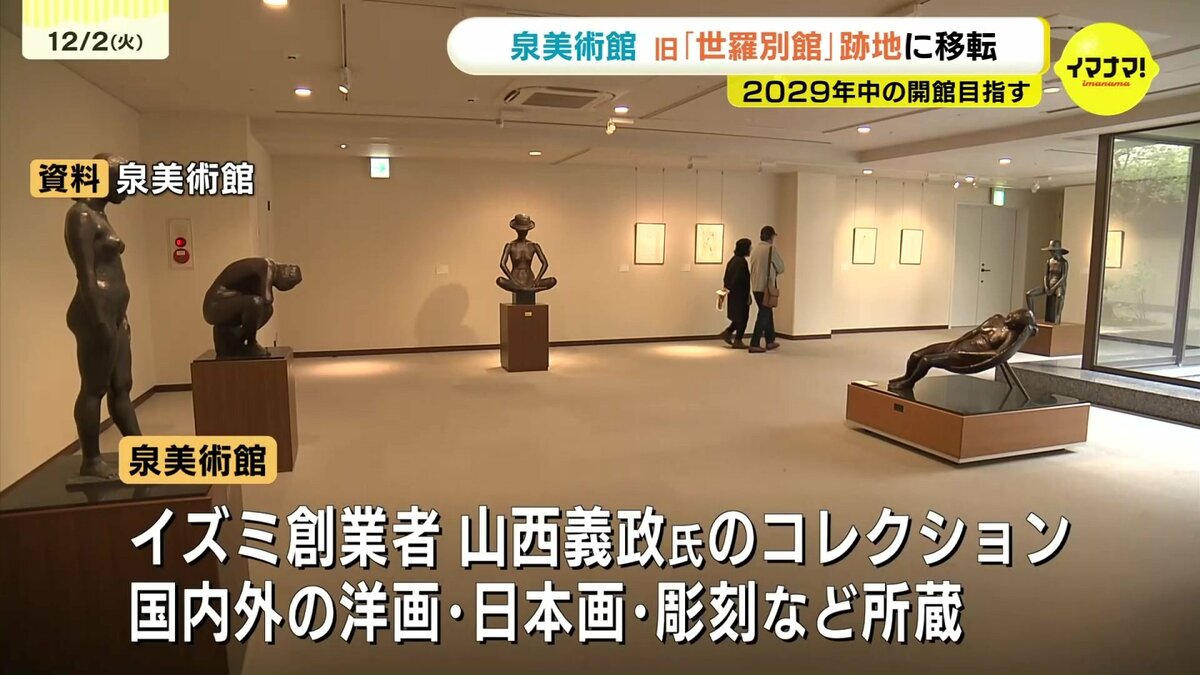 現在の泉美術館はイズミの創業者で、2020年に亡くなった山西義政氏のコレクションで、国内外の洋画、日本画、彫刻などを所蔵しています。設備の老朽化もあり移転先を探していましたが、イズミ創業の地の中区新天地近くに構えることになりました。美術館の具体的な内容はまだ決まっていないということです。