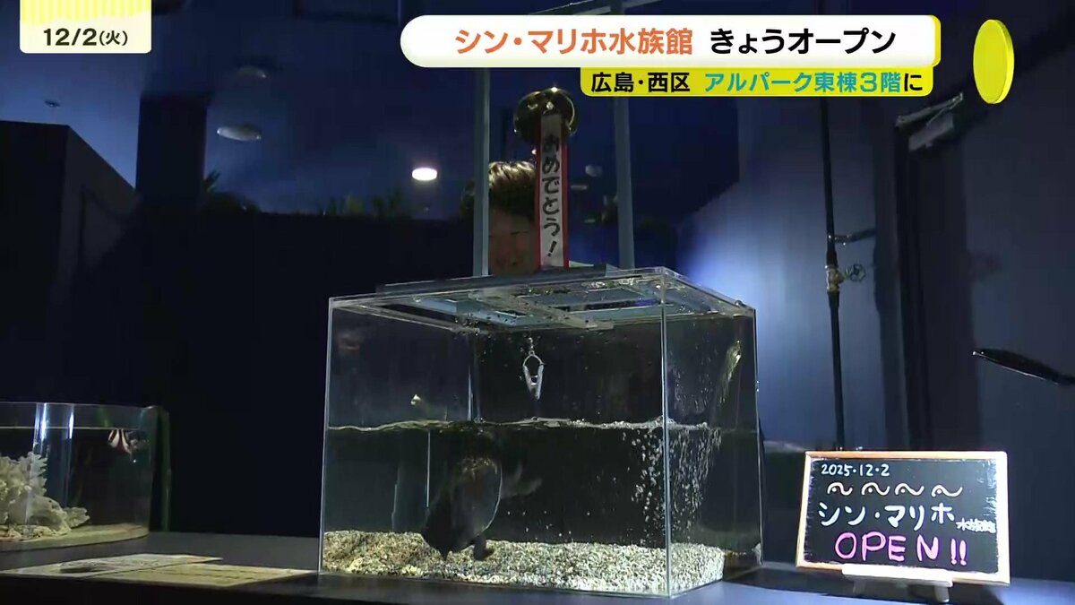 広島市内に新たな水族館の誕生です。広島市西区、アルパーク東棟3階にきょうオープンしたのは「シン・マリホ水族館」です。オープンを楽しみにしていた、来館者およそ70人が列をつくりました。