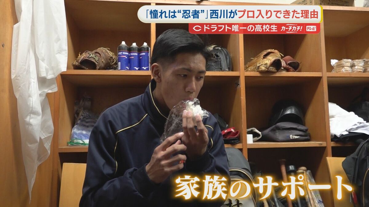 また入学からの3年間で体重が15キロ増えたという西川選手。その裏にあったのが…母が手作りしてくれたおにぎり。多い日には補食として4つ食べていたそうです。実家暮らしの西川選手。家族のサポートもプロ入りには欠かせませんでした。