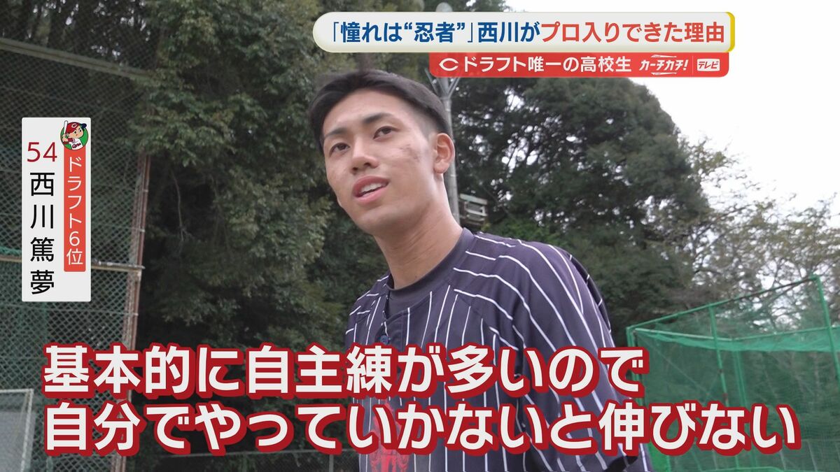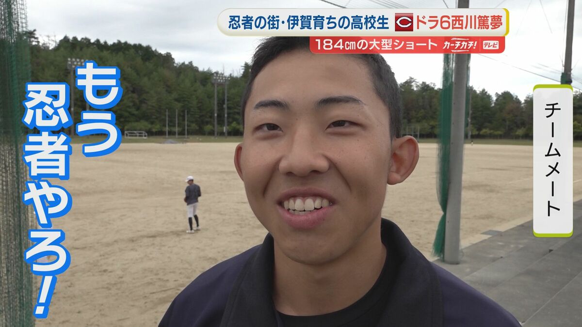 今年のドラフトで9人を指名したカープ。その中で唯一の高校生がドラフト6位の西川篤夢(にしかわ・あつむ)内野手です。184cmの大型ショートの魅力を探りに三重県伊賀市へ向かいました。