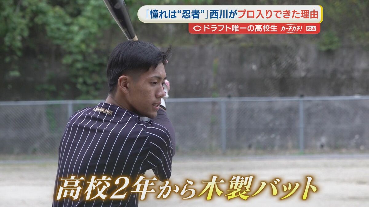 また早くからプロを意識したという左打ちの西川選手。高校2年の時から木製バットで練習に取り組んできました。