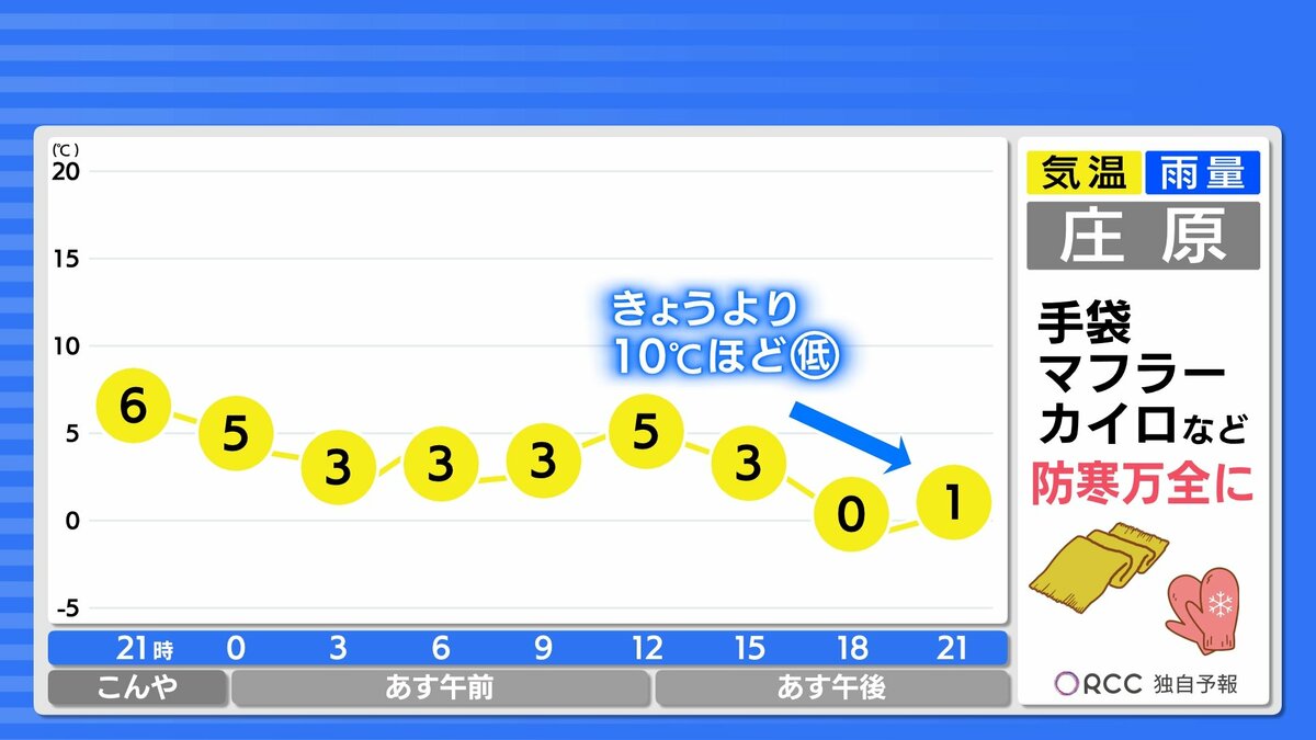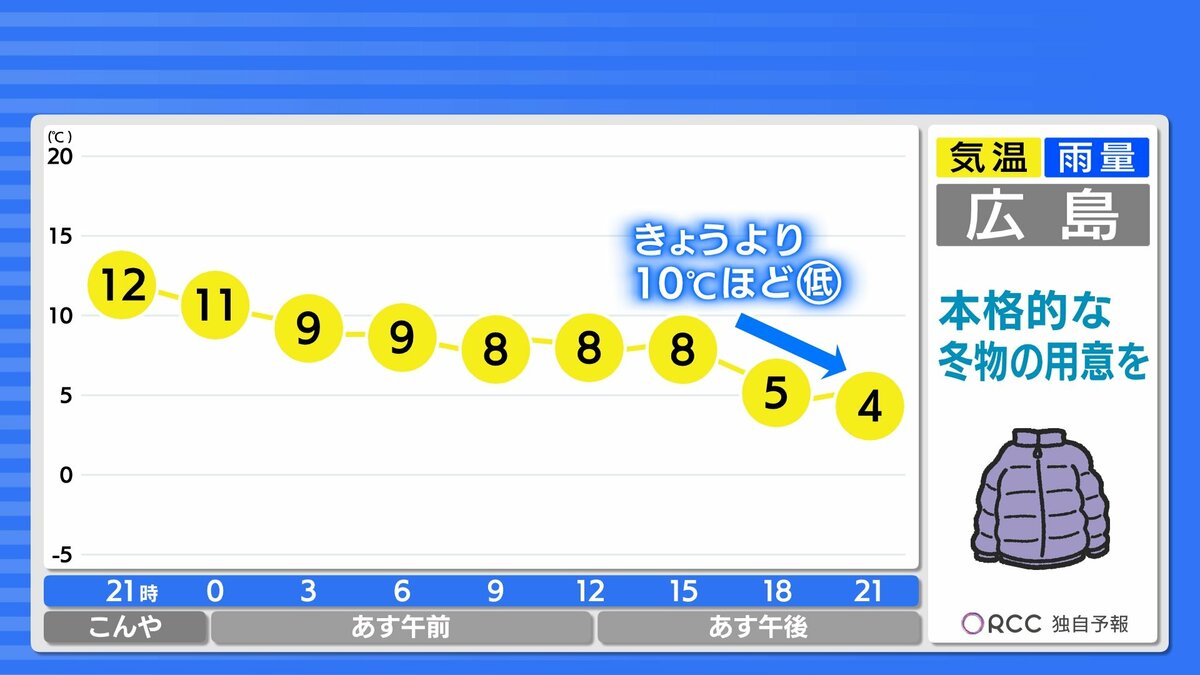 日中の気温は、きょうと比べると10℃ほど低くなり、一気に真冬の寒さが到来します。きょうまでの小春日和から一転、一気に気温が下がりますので、防寒対策は万全にお願いします。