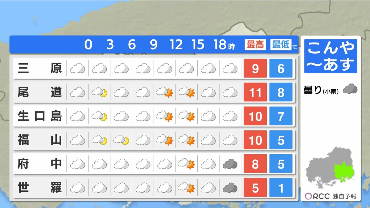 きょう12月2日(火)の広島県内は、午前中ほどよく晴れました。午後は次第に雲が多くなり、北風が強まってきました。最高気温は、広島市中区で19.8℃まで上がり、沿岸部中心に上着いらずの暖かさになりました。