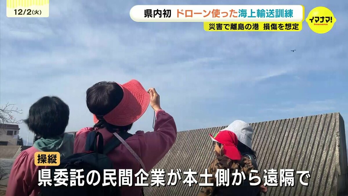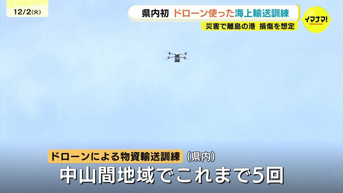 県内ではこれまで、ドローンを活用した物資の輸送訓練は中山間地域で5回おこなわれてきましたが、海上での輸送は今回が初めてだということです。