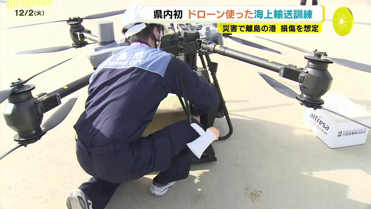 離島が孤立した事態を想定して、ドローンが海上を飛行して物資を運ぶ訓練が広島県内では初めて行われました。